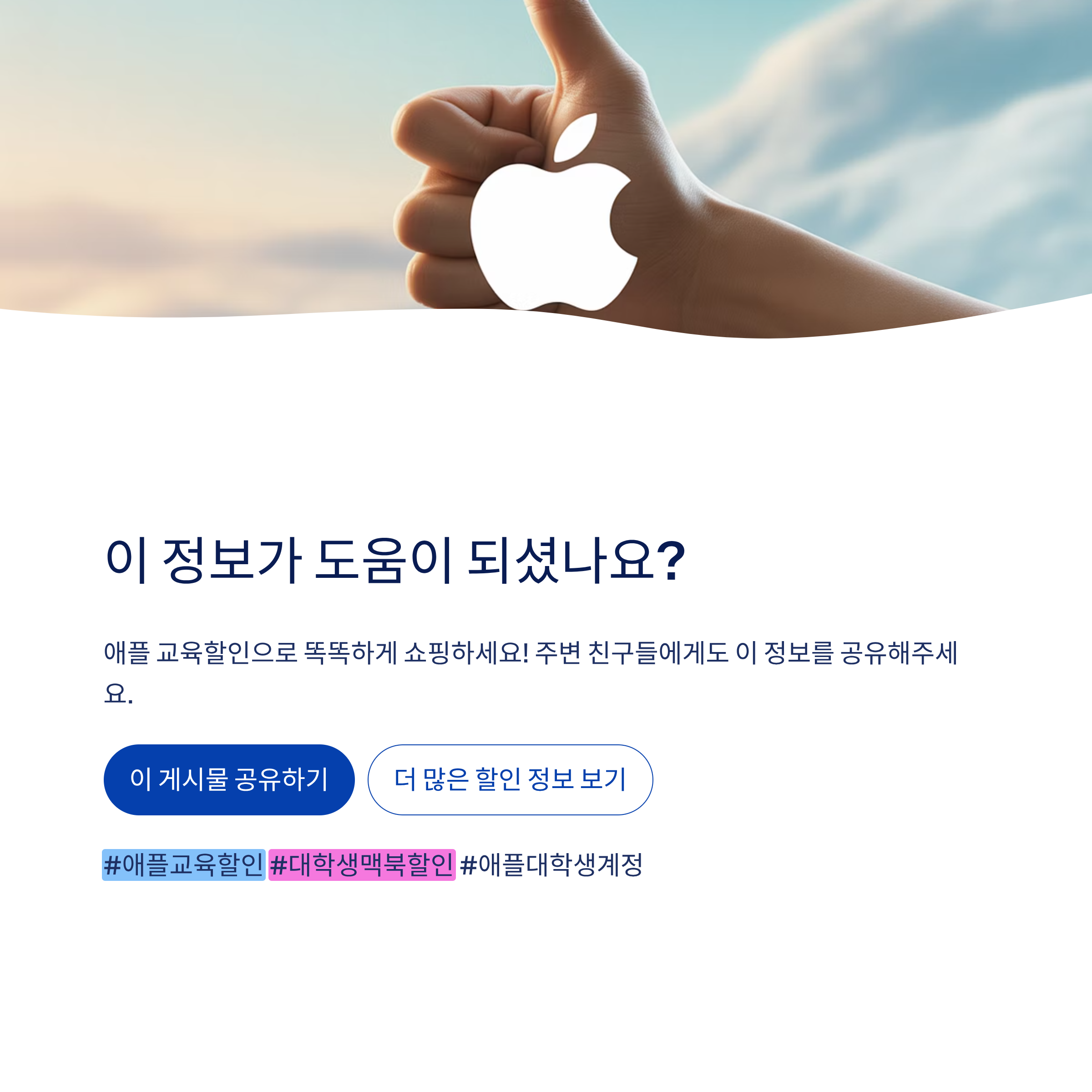 올해 맥북이나 아이패드를 고려 중이라면, 정품 보장과 할인 혜택을 모두 챙길 수 있는 교육용 계정이 가장 현명한 선택입니다.