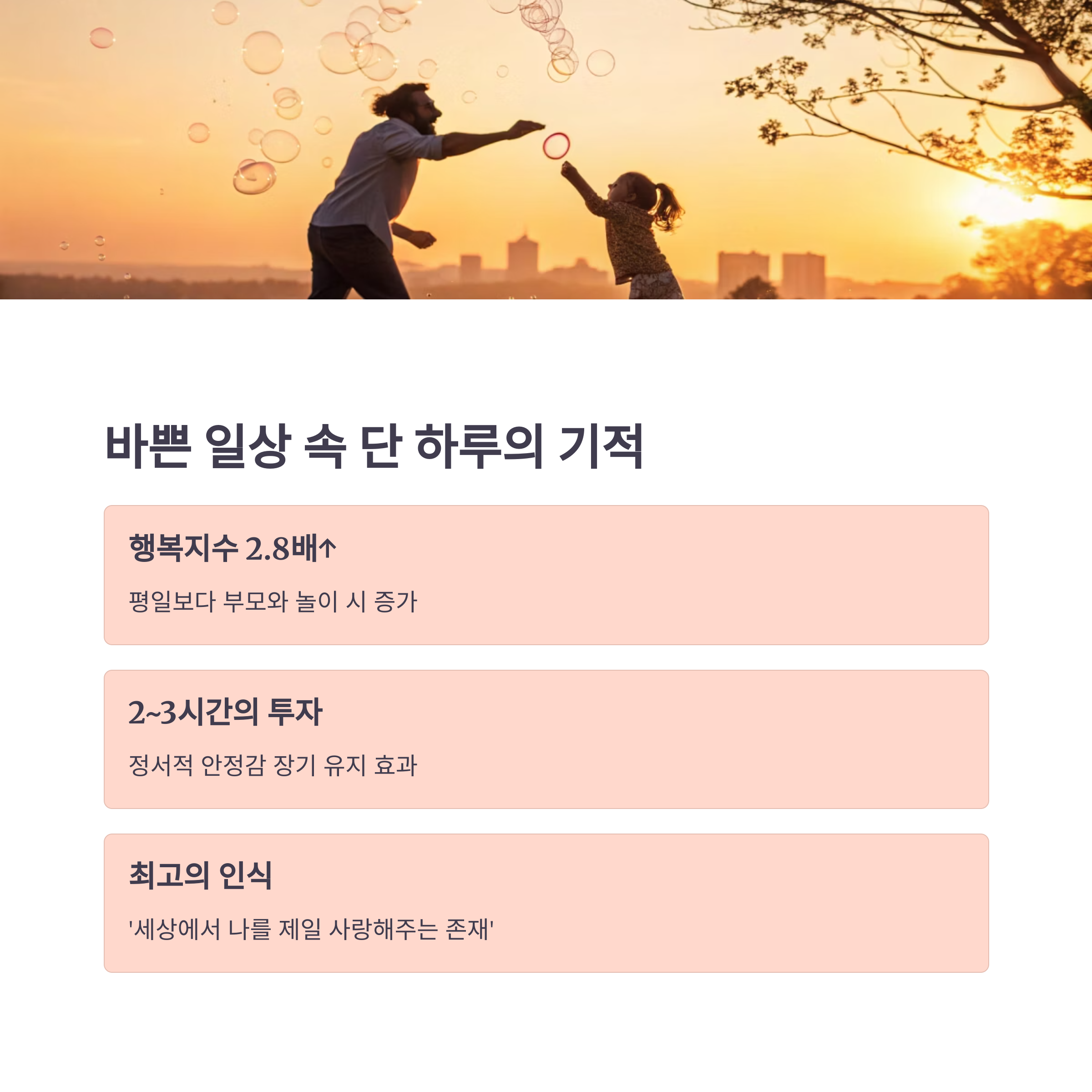 - 특별한 이벤트보다 '같이 놀아주는 시간'을 최우선으로 두세요.
