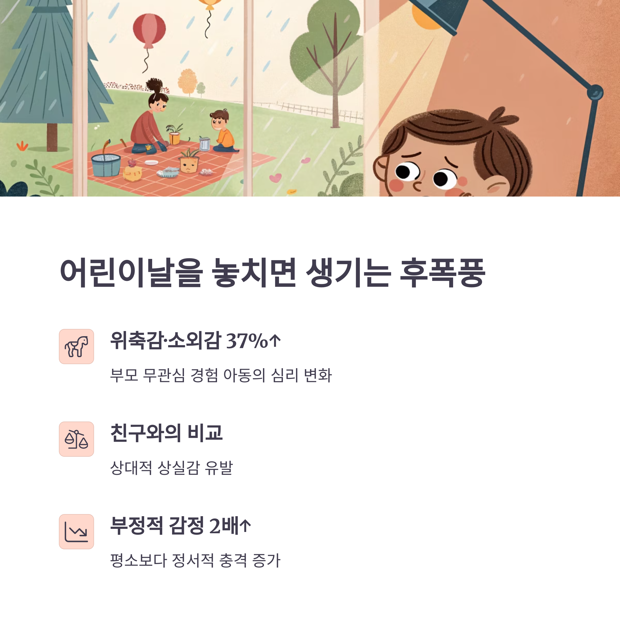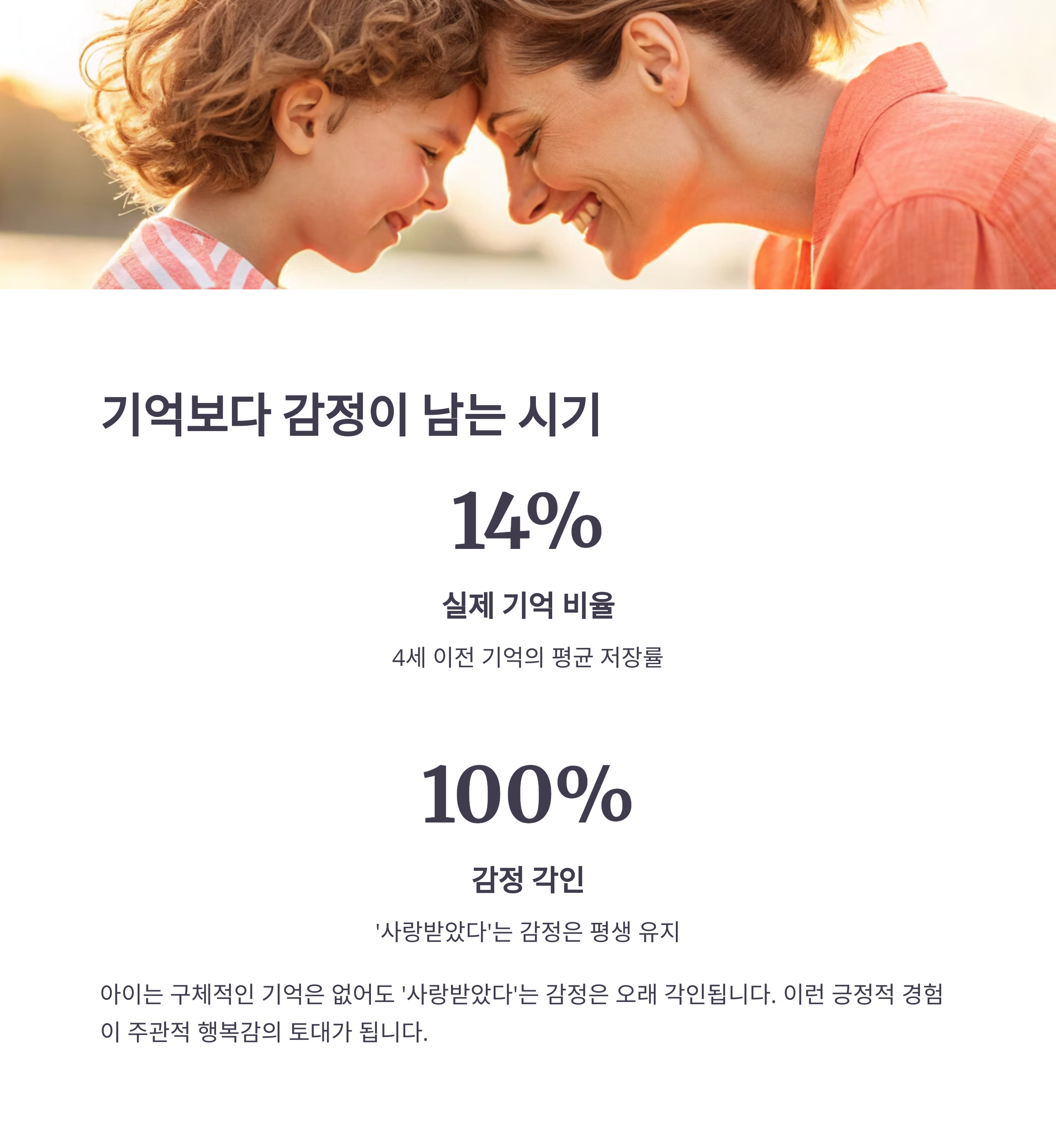 "지금" 부모와 얼마나 함께했는지가 아이의 정서 안정에 큰 영향을 미칩니다.