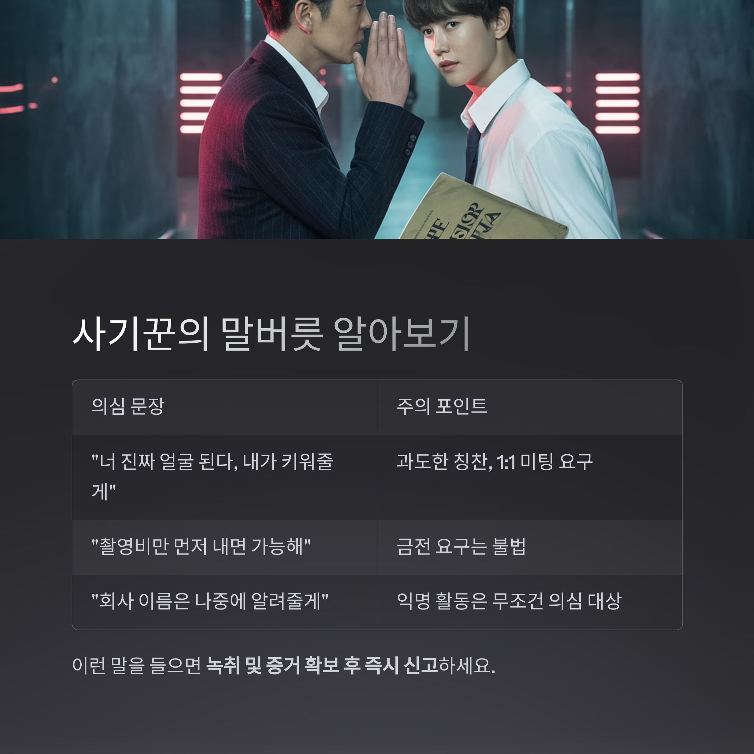핵심: "너만", "비공개", "특별"이라는 말은 대부분 경계의 신호입니다.