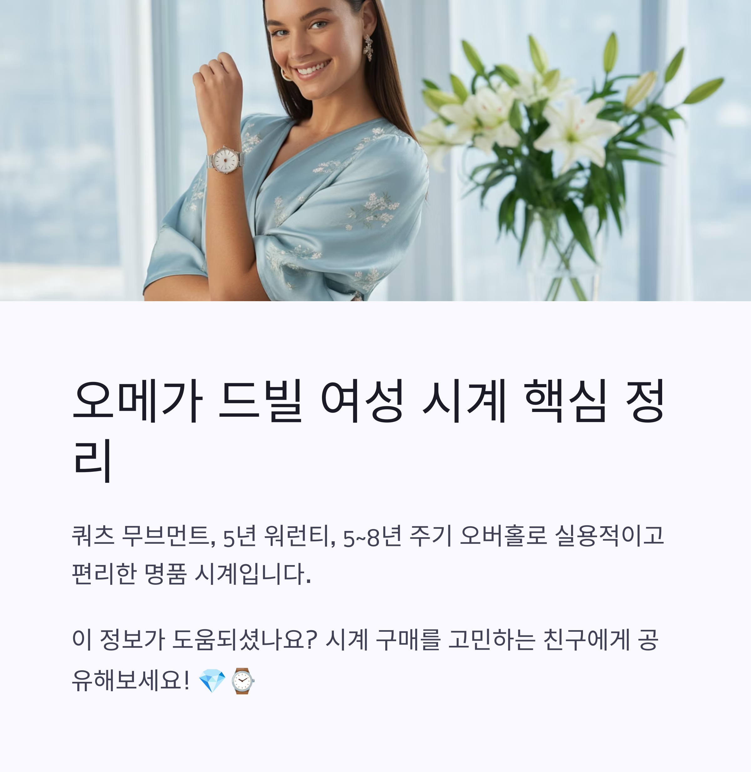 오메가 드빌 여성 시계를 처음 접하면 디자인만큼이나 내부 구조와 유지관리도 궁금해지기 마련입니다. 특히 이 모델이 수동인지, 자동인지, 오버홀은 언제 필요한지, 워런티는 어떻게 적용되는지는 꼭 체크해야 할 부분입니다. 이번 리뷰에서는 착용 후 사용감뿐만 아니라 기계적 특징과 보증 관련 핵심 정보까지 함께 정리해드립니다.