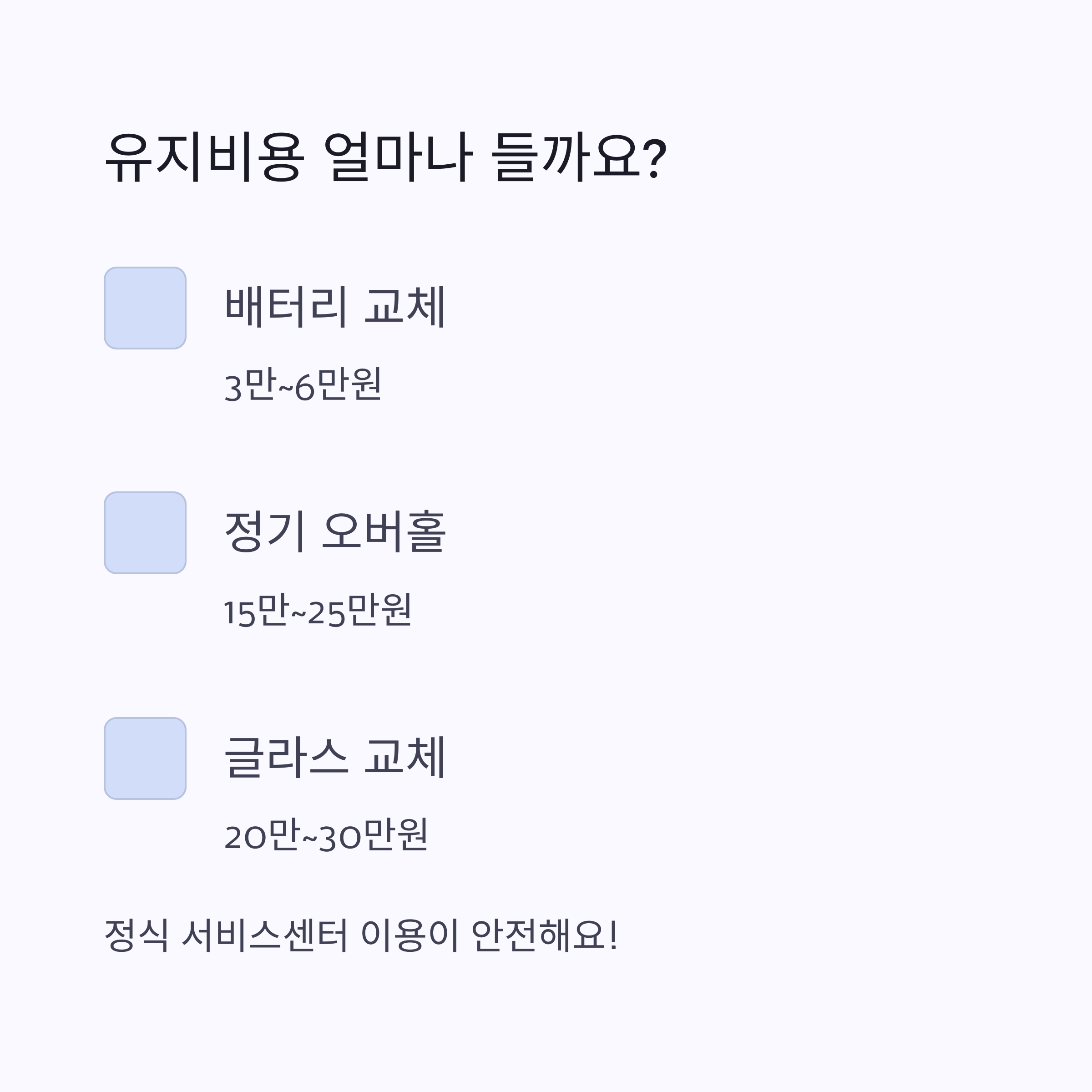 | 정기 오버홀 | 15만 ~ 25만원 (필요 시) |