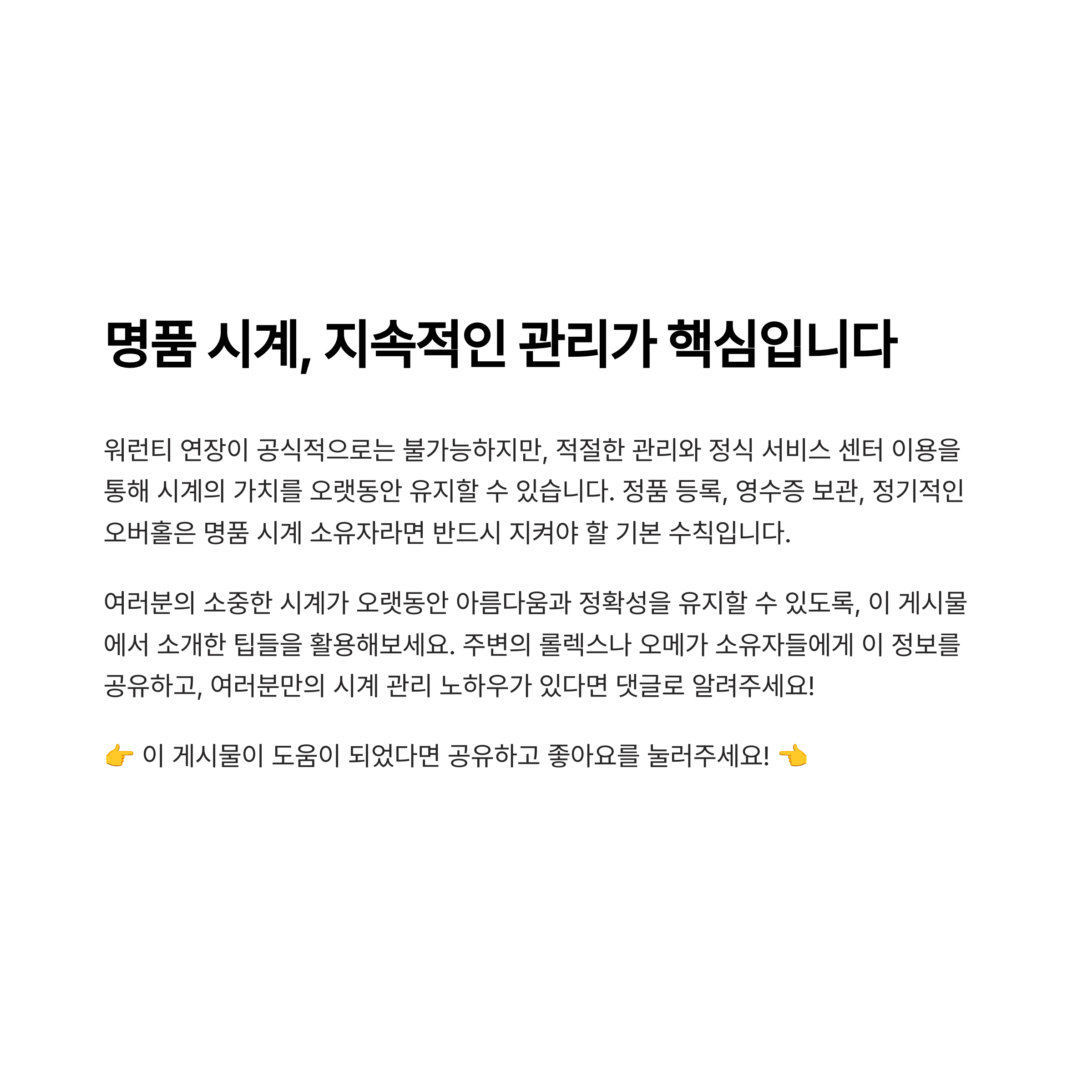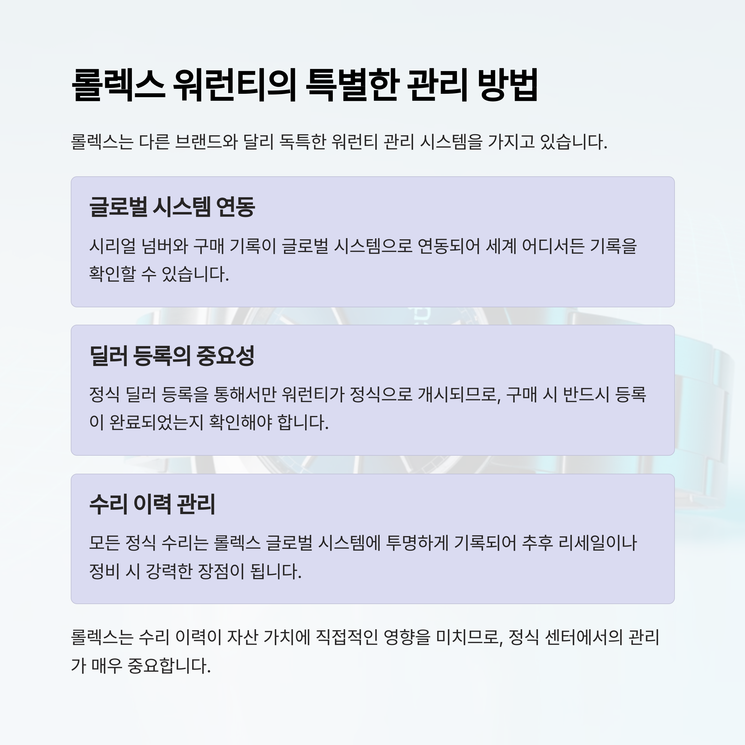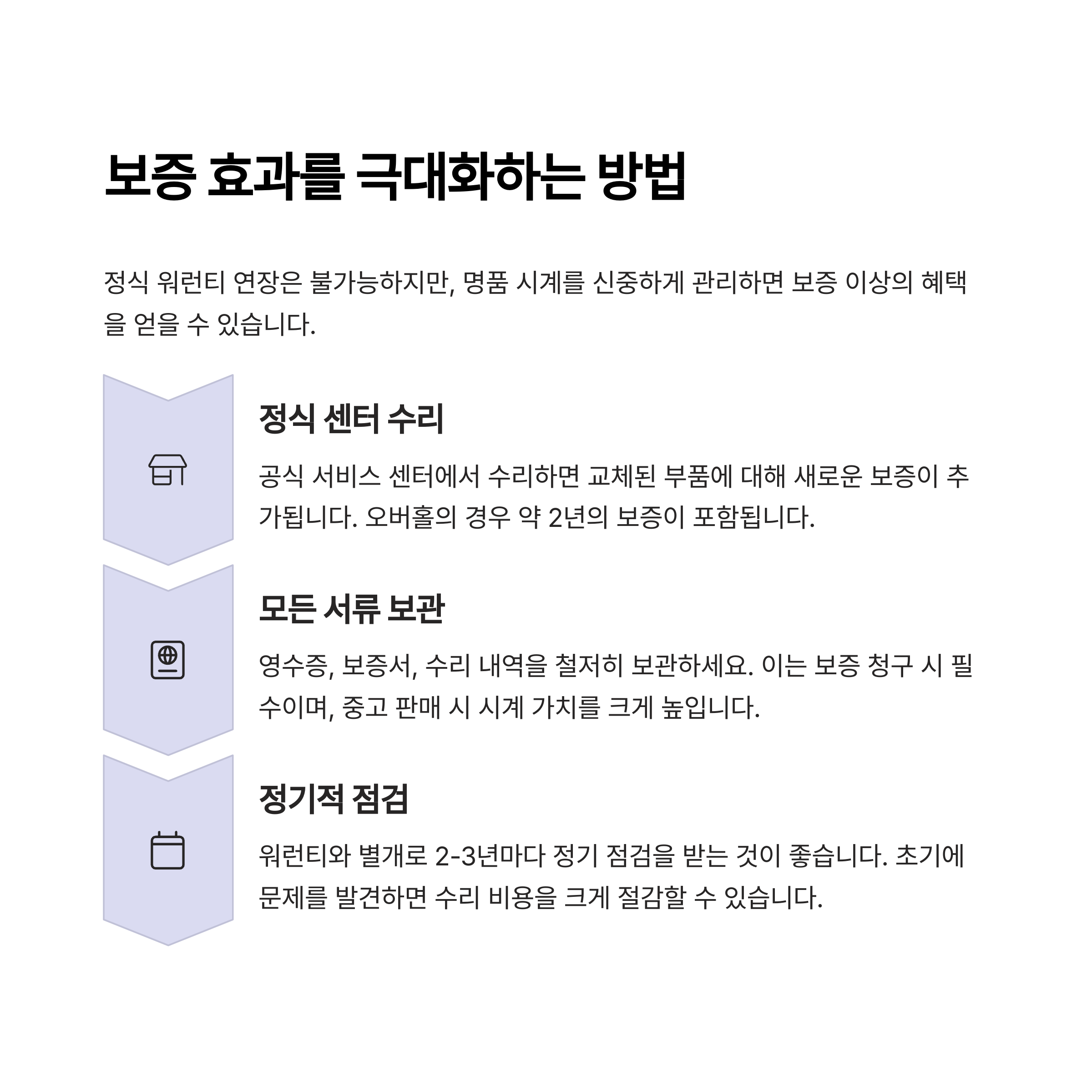 | 롤렉스 | 5년 | X (공식적 연장 불가) | 정식 딜러 등록 필수 |