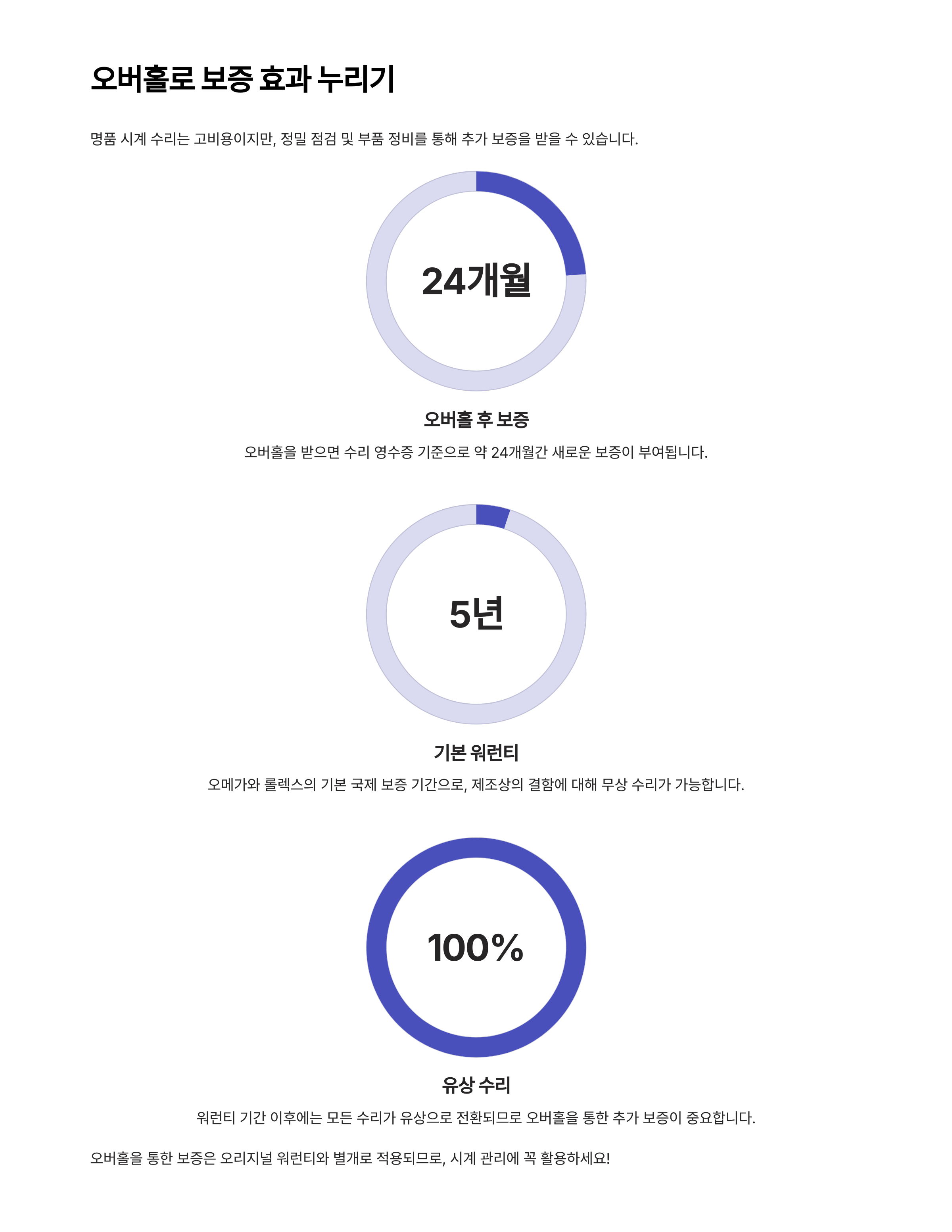 보시는 것처럼 오메가와 롤렉스 모두 공식적인 워런티 연장 제도는 운영하지 않습니다.