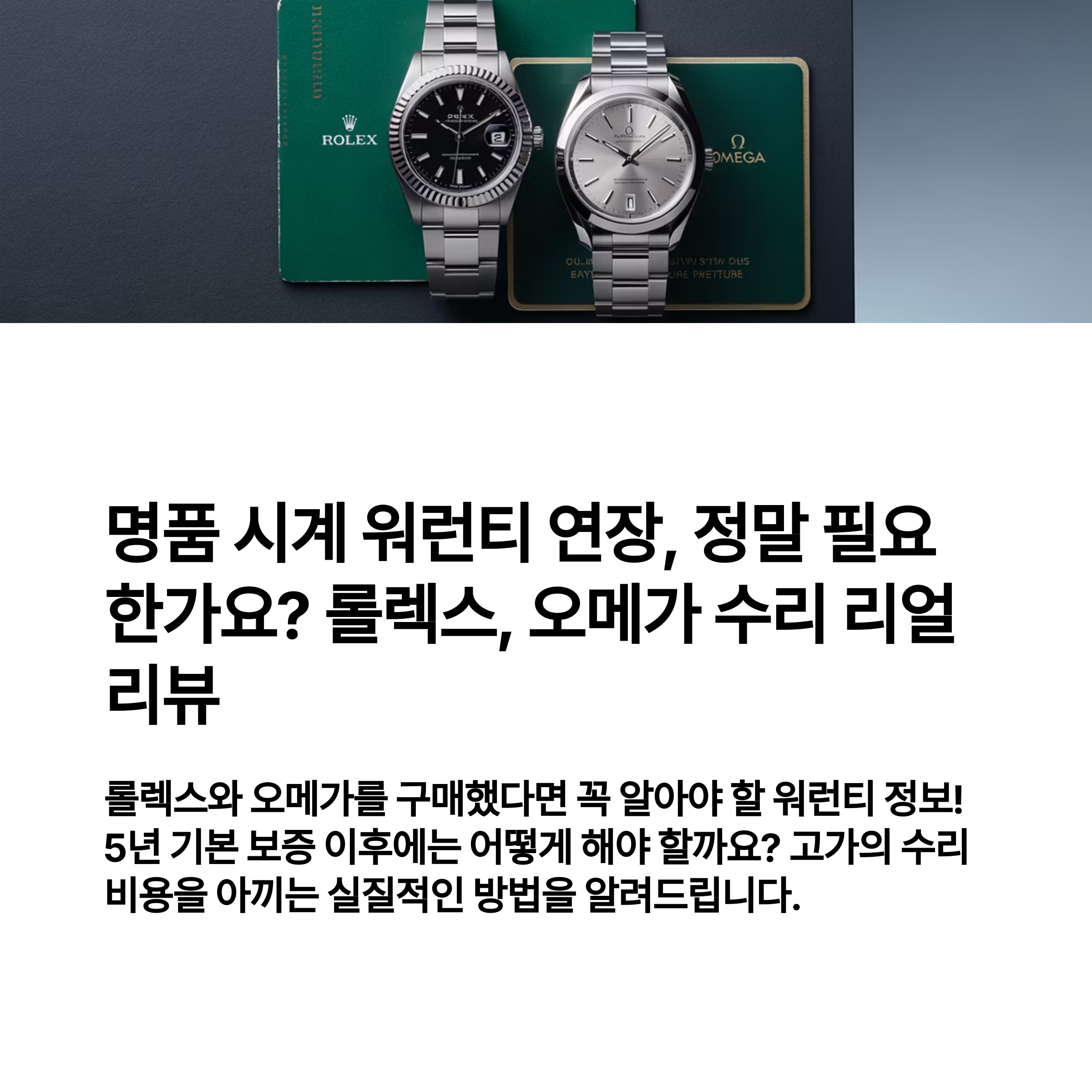 오메가와 롤렉스는 기본적으로 5년의 국제 보증기간을 제공합니다. 이 기간 동안 제조상의 결함이나 고장이 발생할 경우 무상 수리가 가능하지만, 이후에는 모든 수리가 유상으로 전환됩니다. 명품 시계의 유지 관리 비용이 상당하기 때문에, 워런티 연장에 대한 관심이 높아지고 있습니다. 이 글에서는 오메가와 롤렉스의 워런티 정책 차이, 연장이 필요한 경우, 그리고 실질적인 꿀팁까지 꼼꼼히 안내해드립니다.