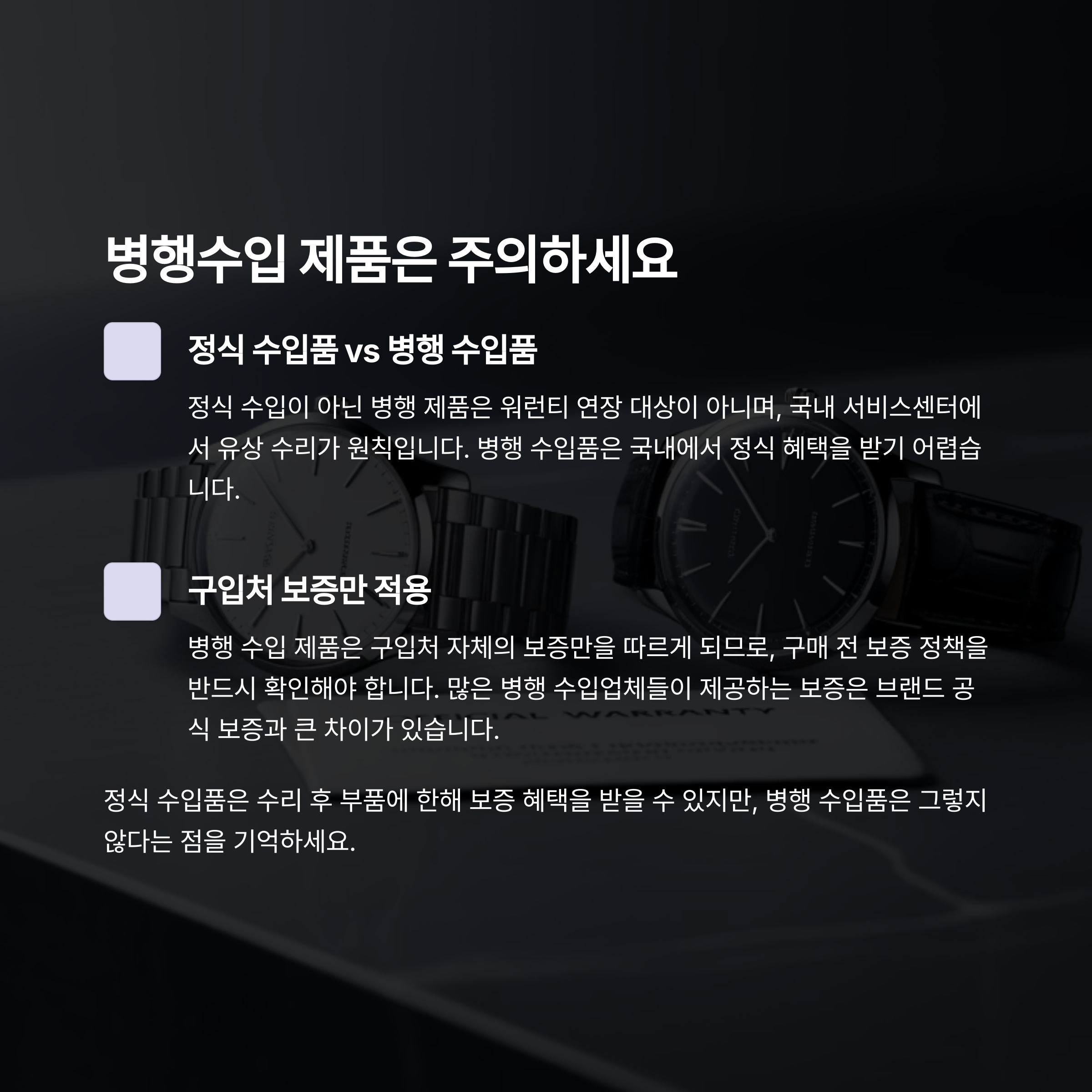 정식 수입이 아닌 병행 제품은 워런티 연장 대상이 아니며,