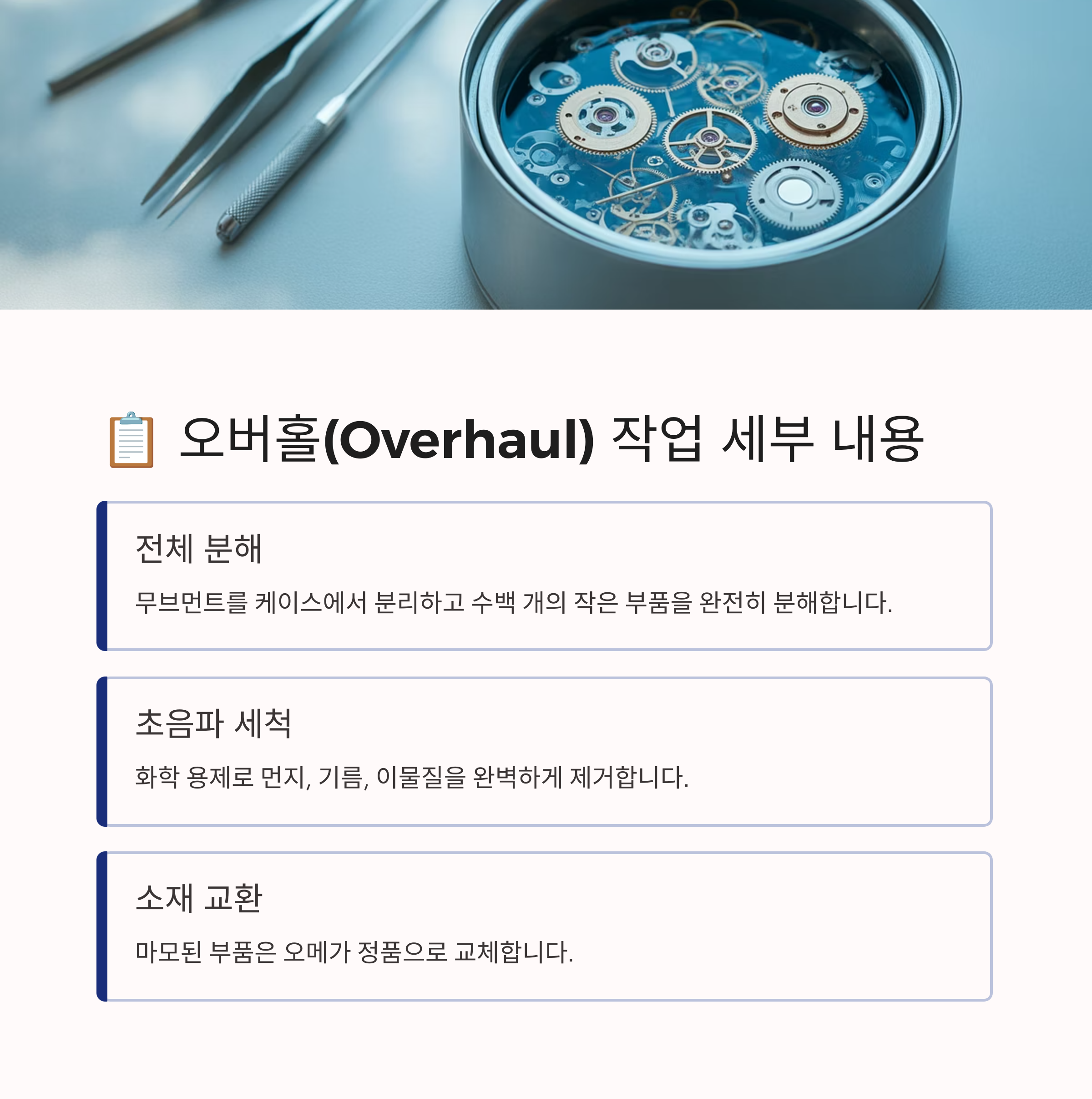 - 오메가 공식 오버홀은 보통 80~100만 원대 수준입니다.