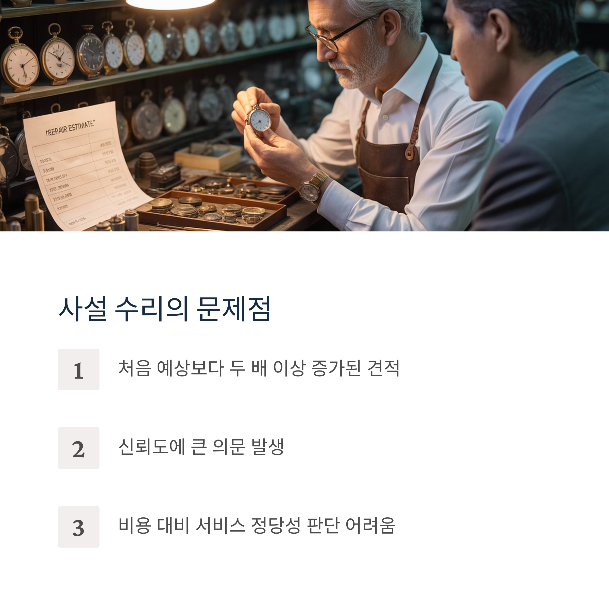 과정의 투명성, 수리 후 품질 보증, 고객 응대 등에서