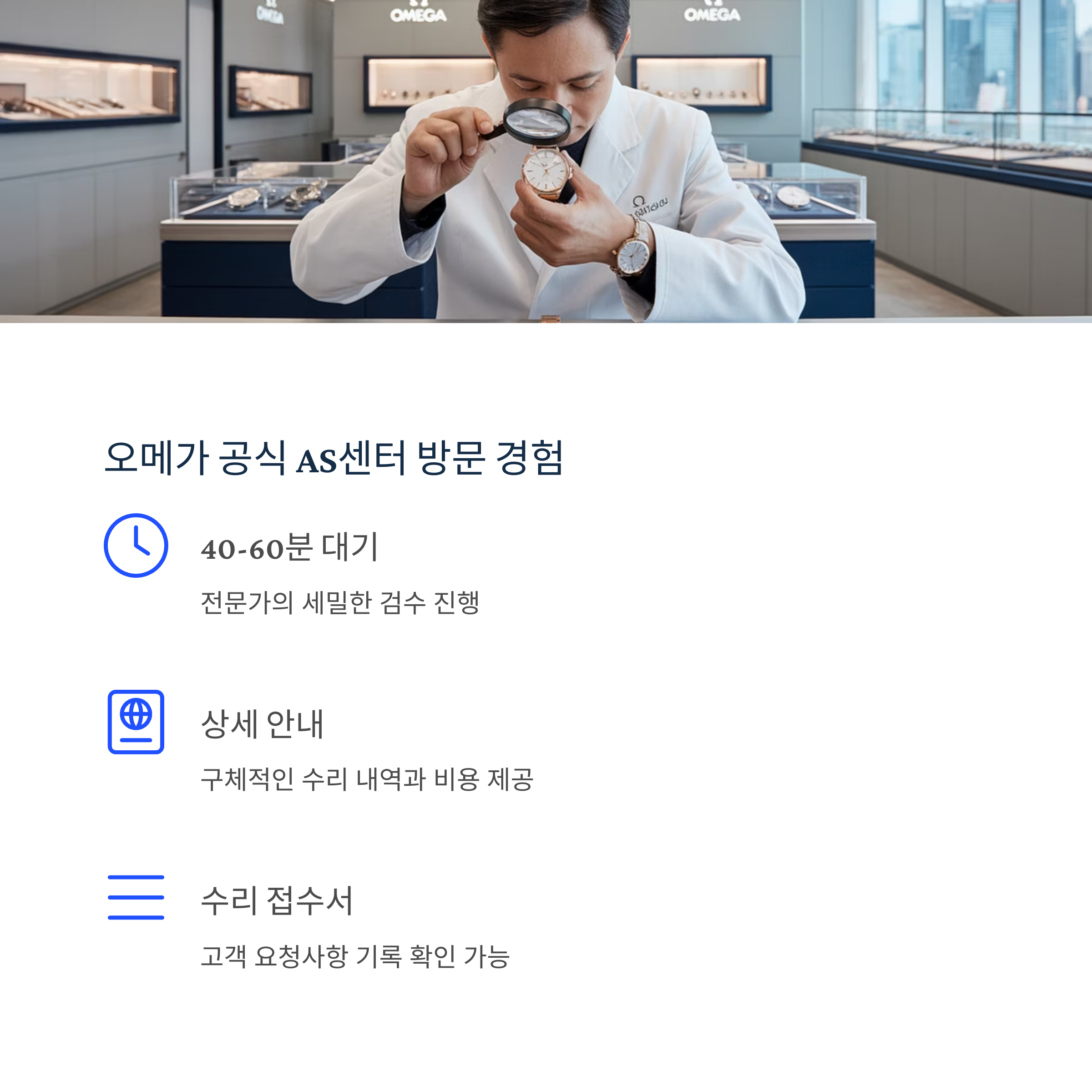 오메가 공식 AS센터 방문, 투명한 진단과 응대
