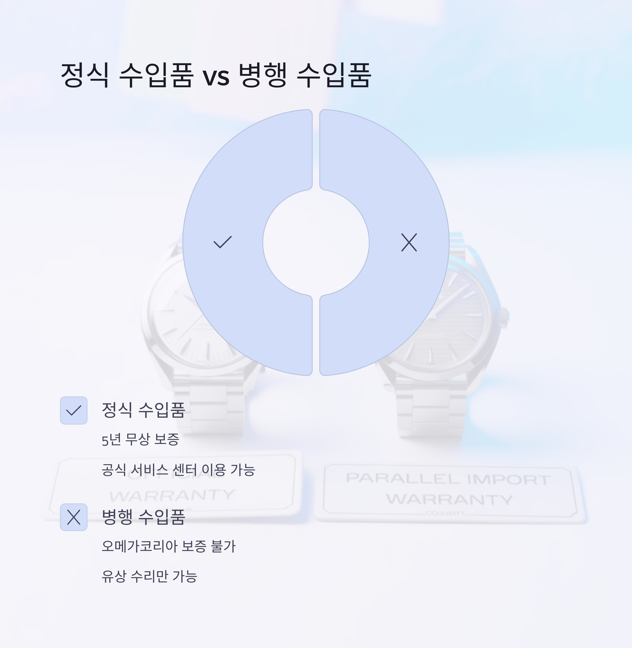 국내 정식 수입이 아닌 병행 수입 시계는 오메가코리아의 무상 보증 대상이 아닙니다.