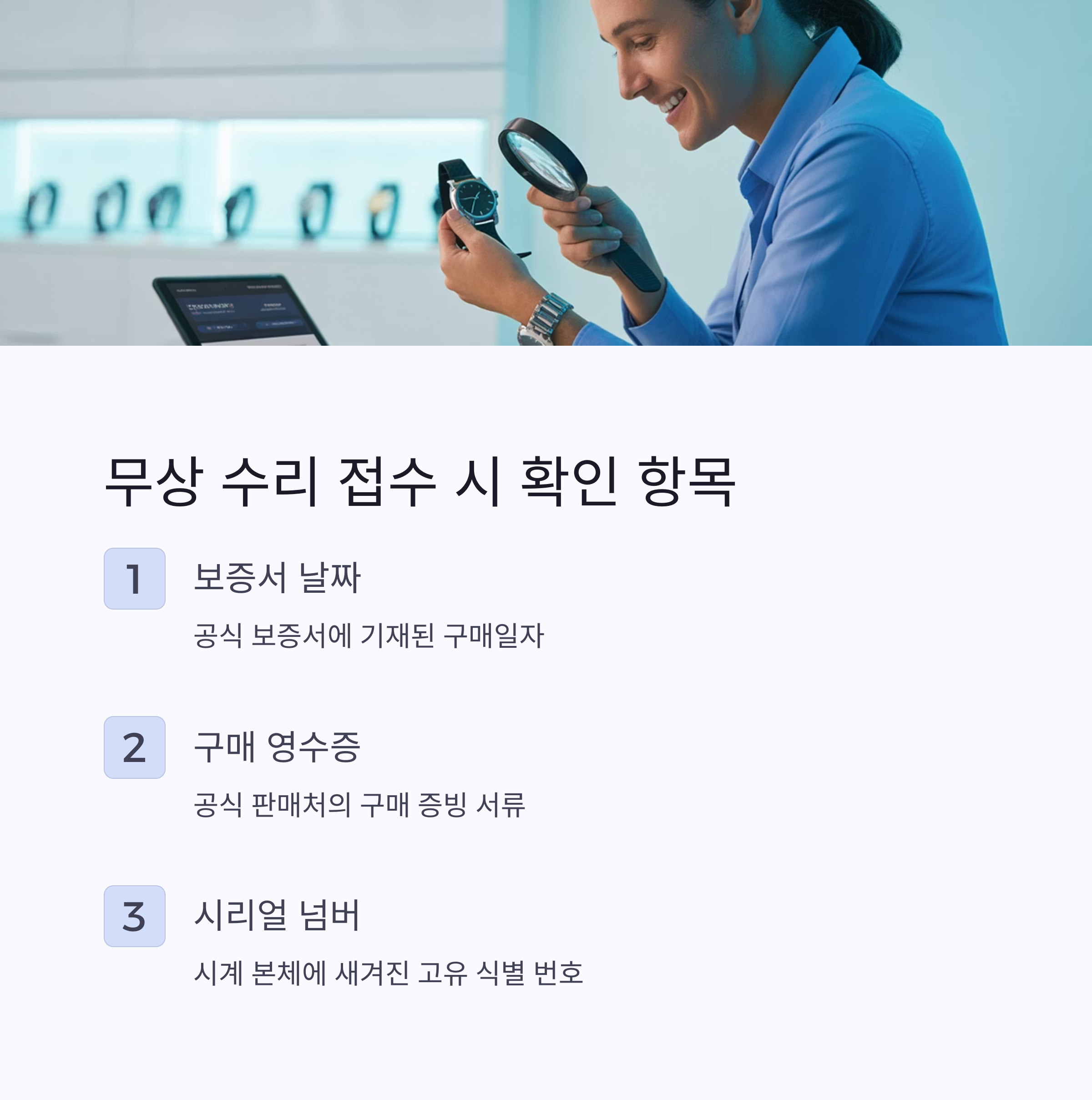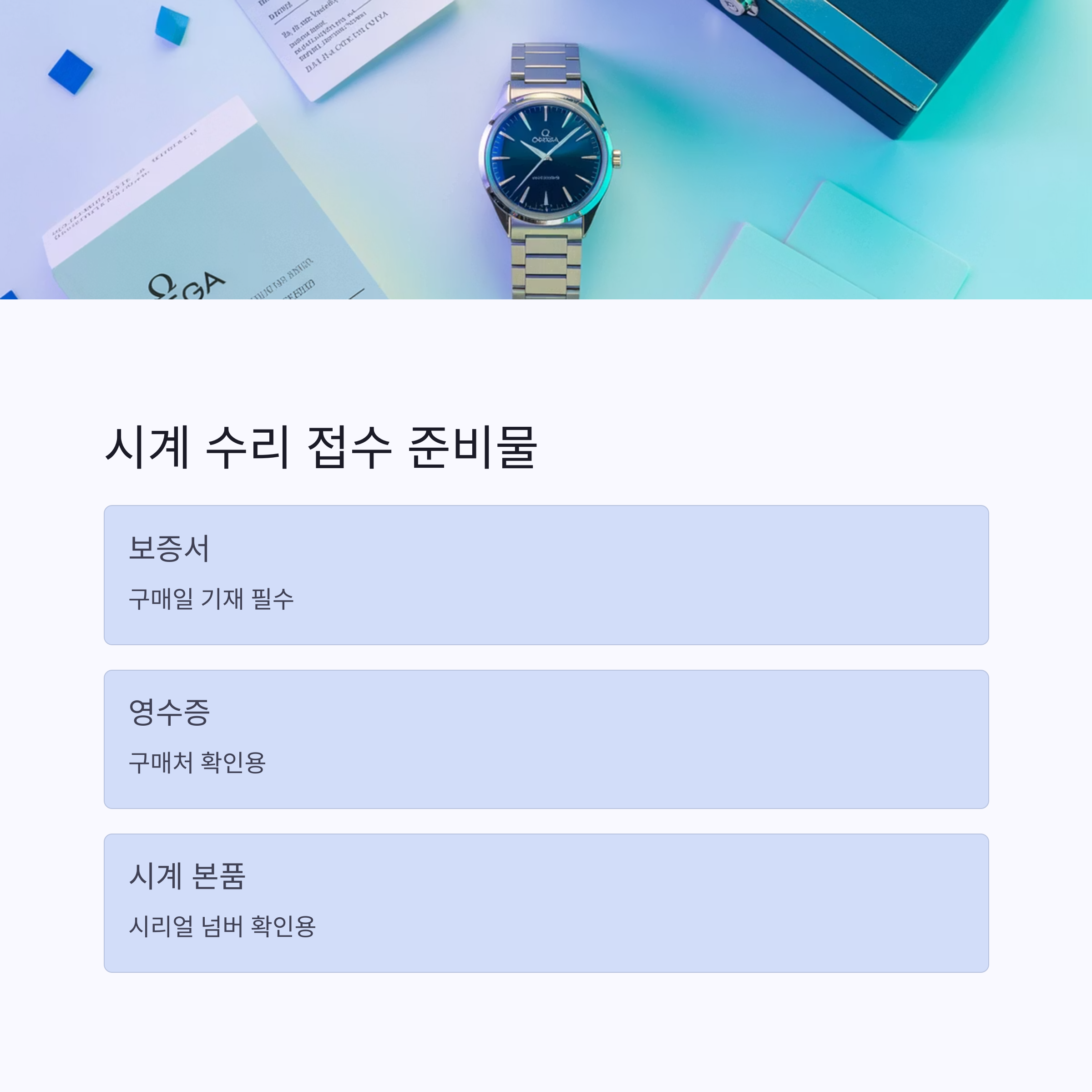 시계를 수리 접수할 때에는 다음 항목을 준비해 주세요.
