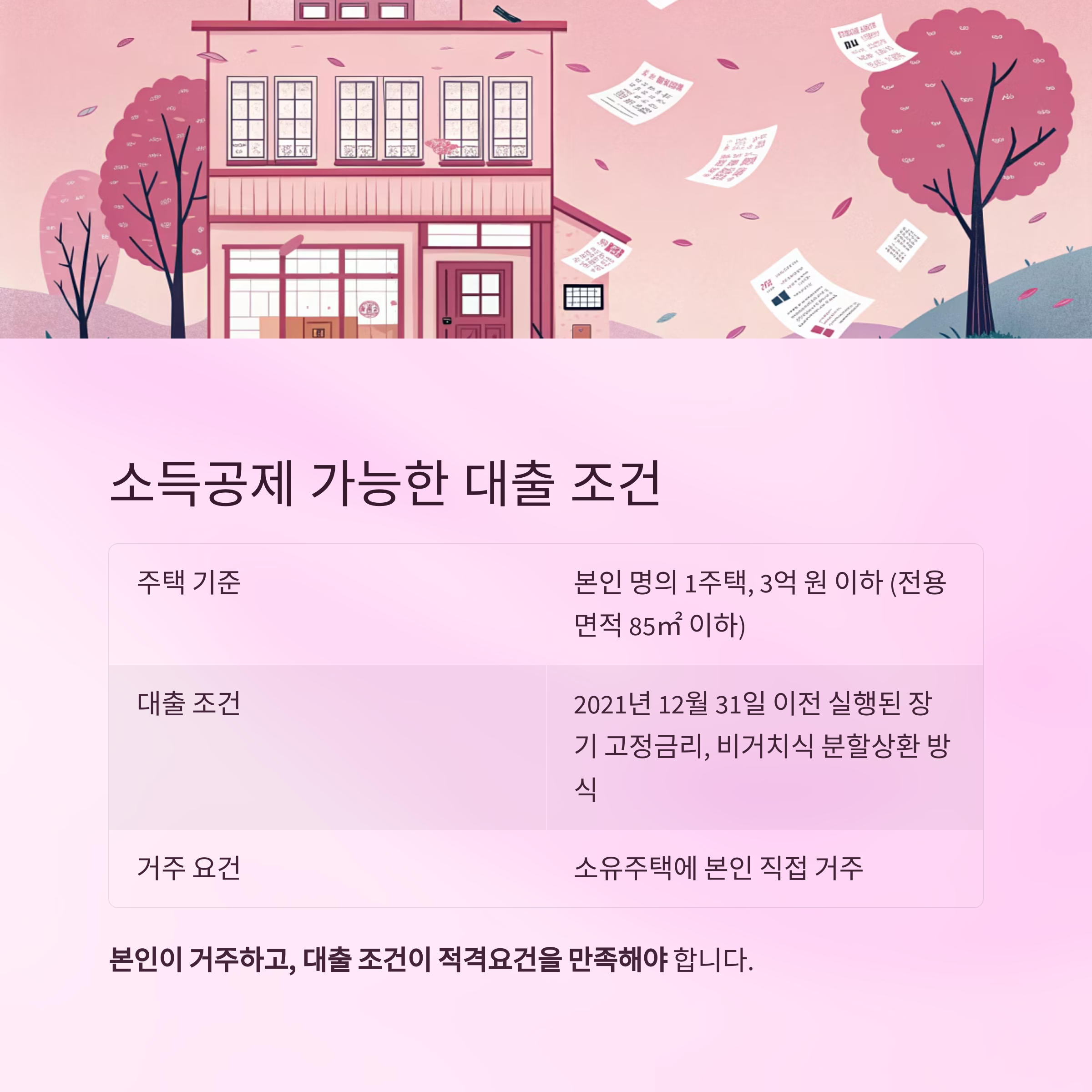 즉, 단순히 주택을 소유했다고 되는 것이 아니라, 본인이 거주하고, 대출 조건이 적격요건을 만족해야 합니다.