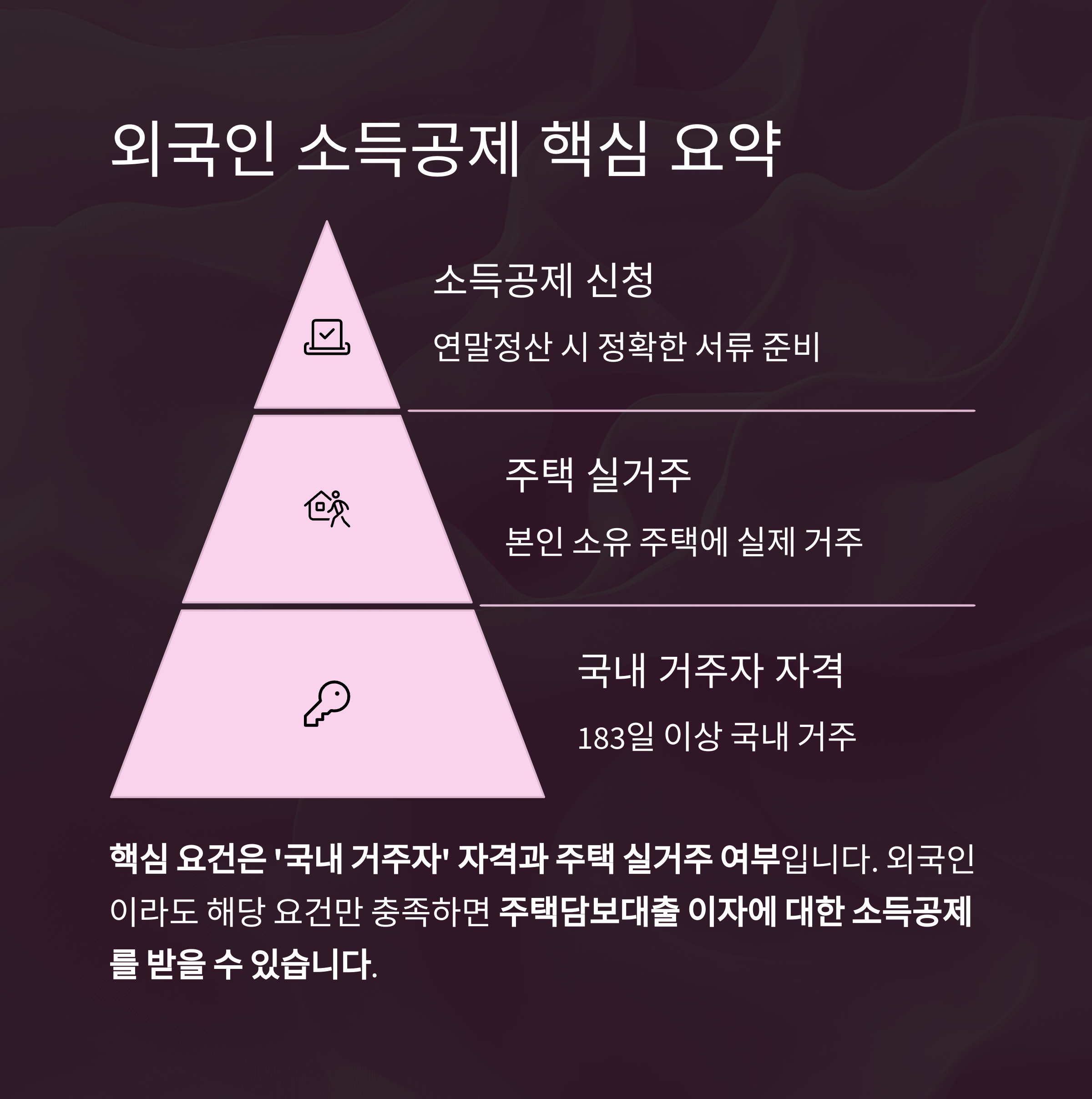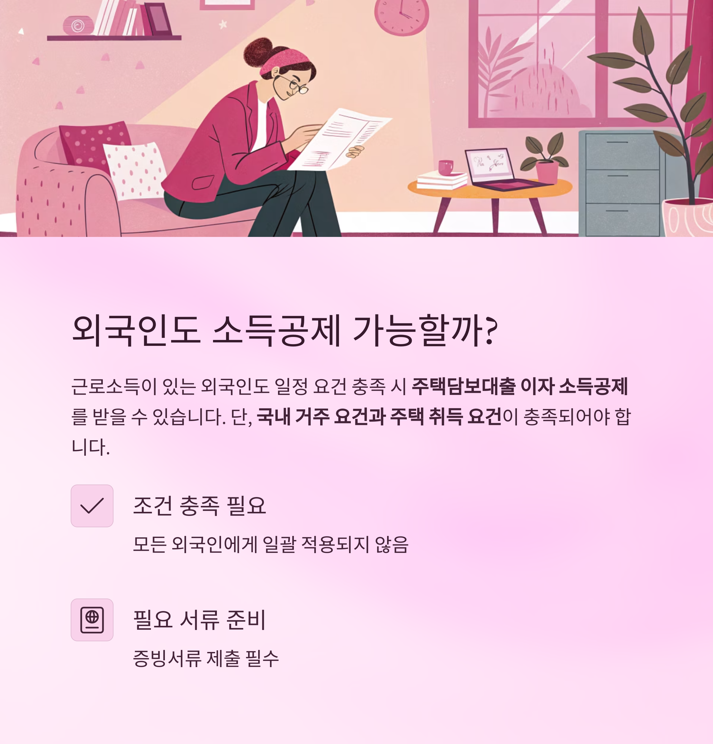 근로소득이 있는 외국인도 한국에서 일정 요건을 충족하면 주택담보대출 이자에 대한 소득공제를 받을 수 있습니다.