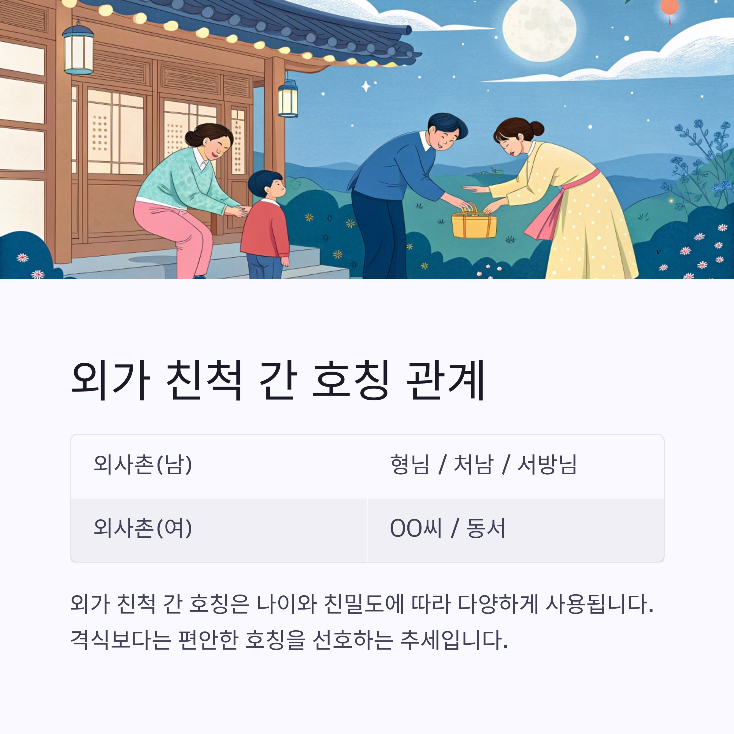 | 외가 친척 | 배우자가 부르는 호칭 | 주요 특징 |