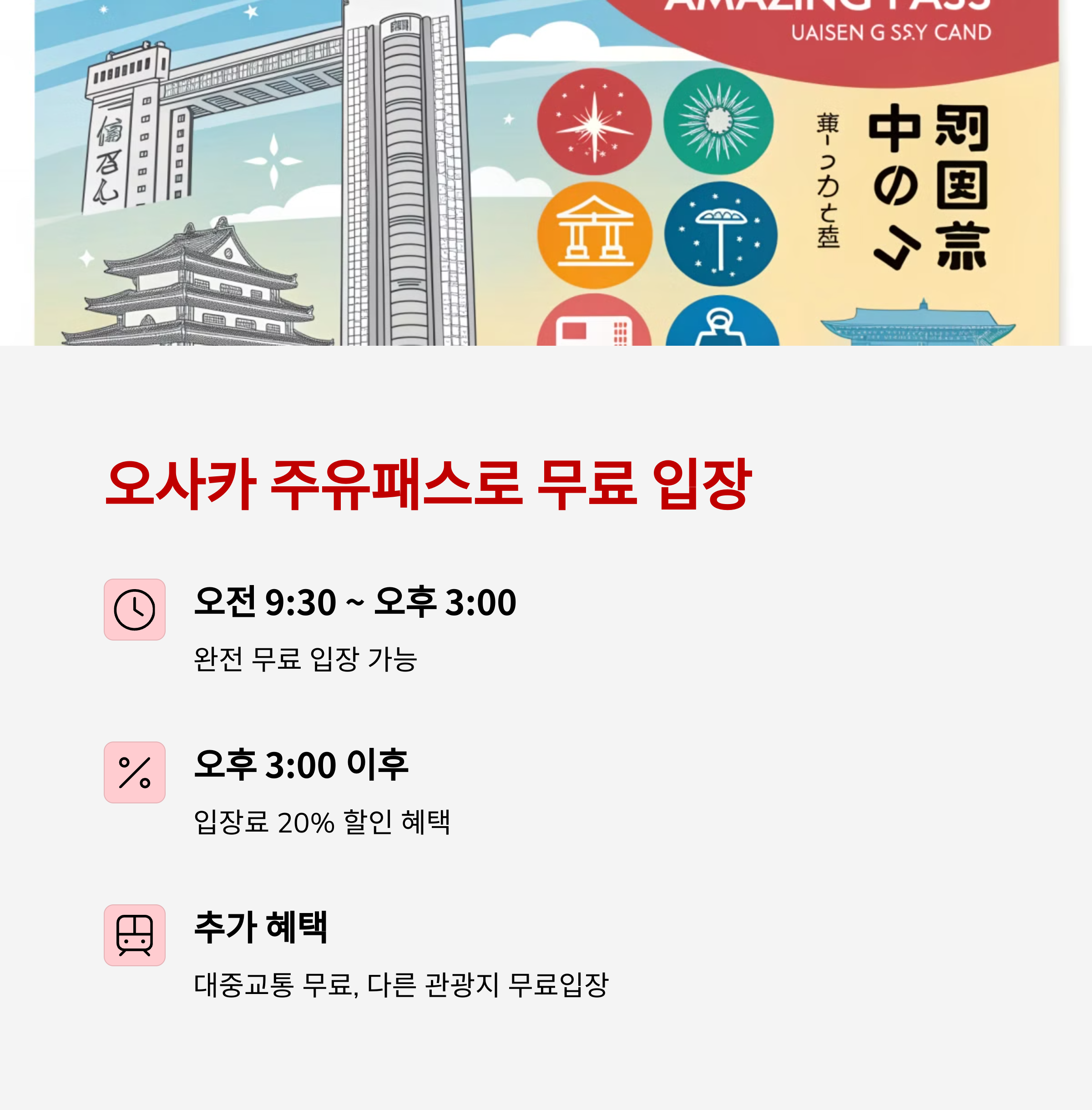 또한 메트로 패스를 사용하면 입장료가 10% 할인됩니다. 이 패스를 활용하면, 교통비뿐만 아니라 관광지 입장료까지 절약할 수 있어 경제적입니다. 특히 오사카의 대중교통을 자주 이용하는 여행자라면, 메트로 패스를 이용하는 것이 매우 유리합니다. 주유패스를 통해 교통비를 절약하면서도 관광지 입장료를 무료로 제공받는 것은 매우 큰 혜택입니다.
