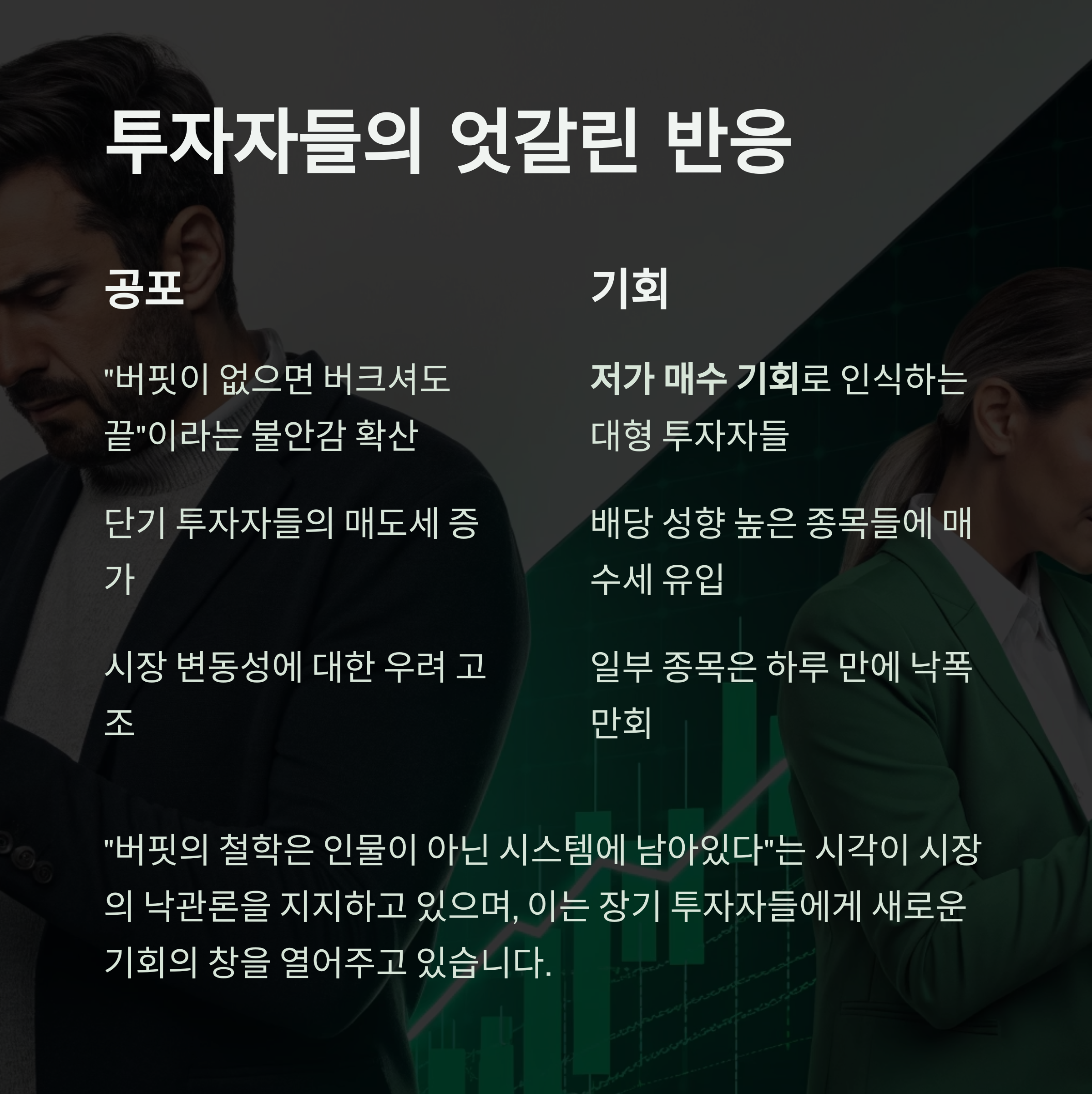 일반 투자자들 사이에서는 "버핏이 없으면 버크셔도 끝"이라는 공포심이 일부 형성되었지만, 반대로 대형 투자자들은 조정 국면에서 저가 매수 기회를 포착하고 있습니다.