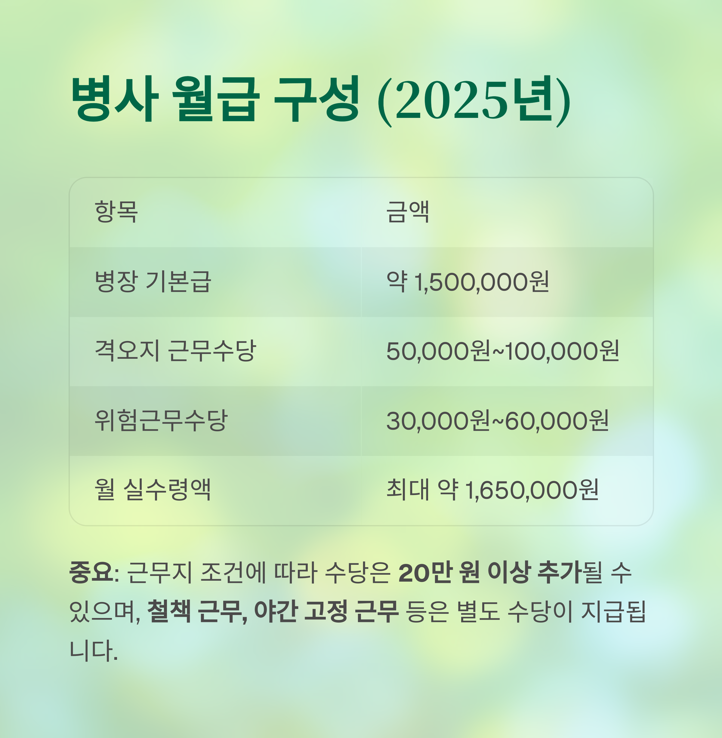 병장 기본급 | 약 1,500,000원 | 2025년 기준 |