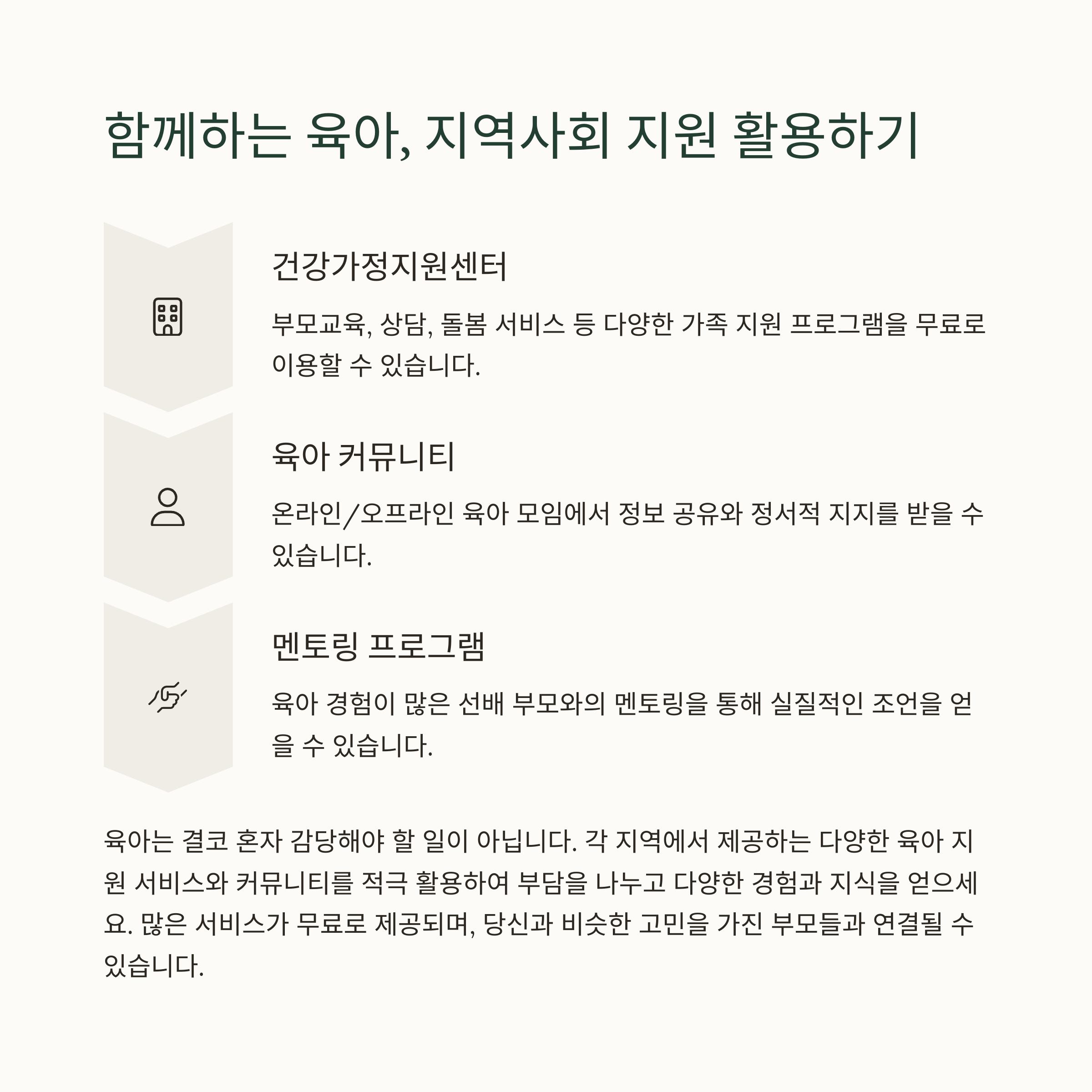 지역 사회 프로그램은 육아 스트레스를 해소할 수 있는 실질적 지원을 제공합니다.