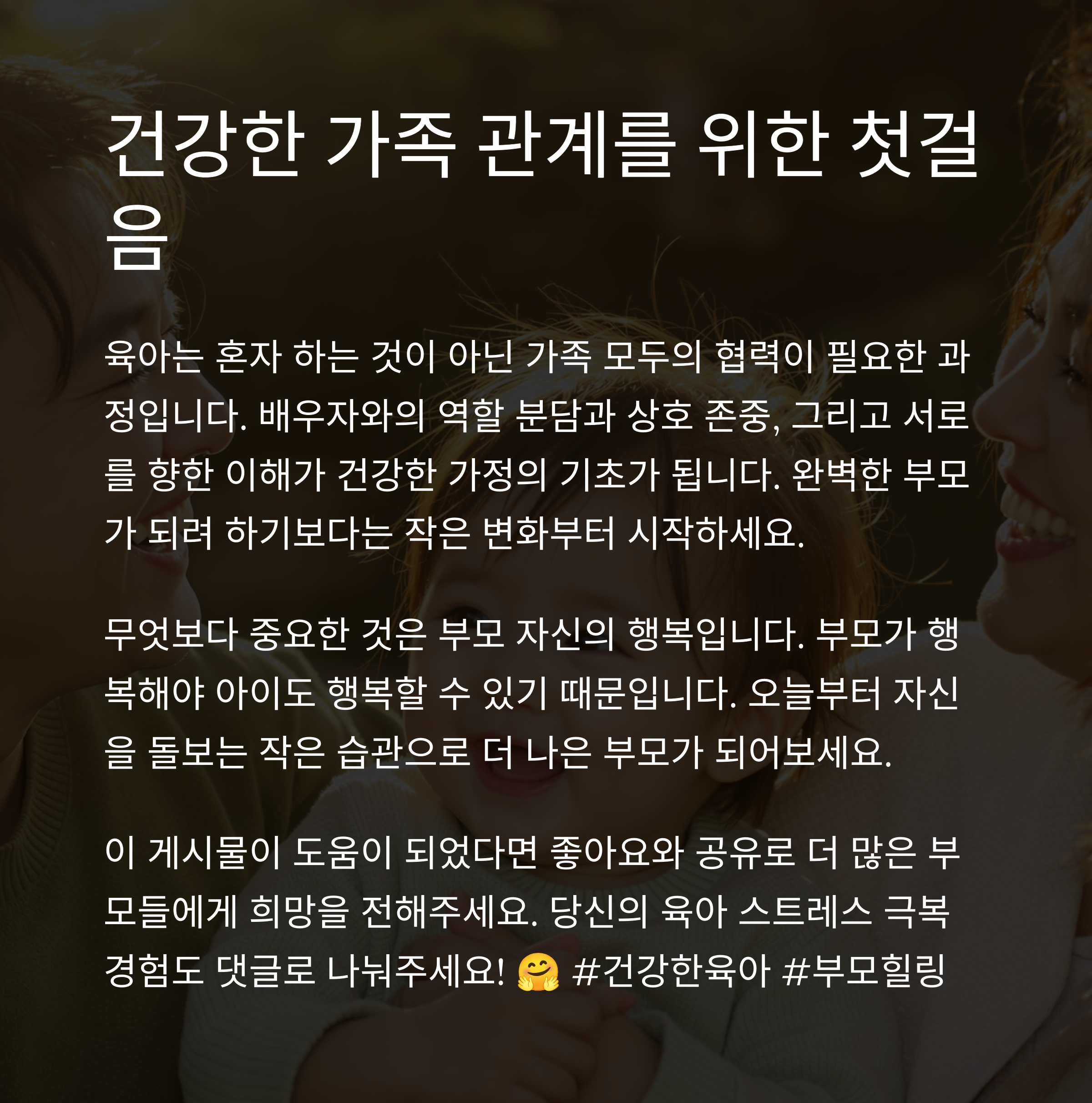 어려운 시기를 함께 극복하며 건강한 부모-자녀 관계를 만들어가길 바랍니다.