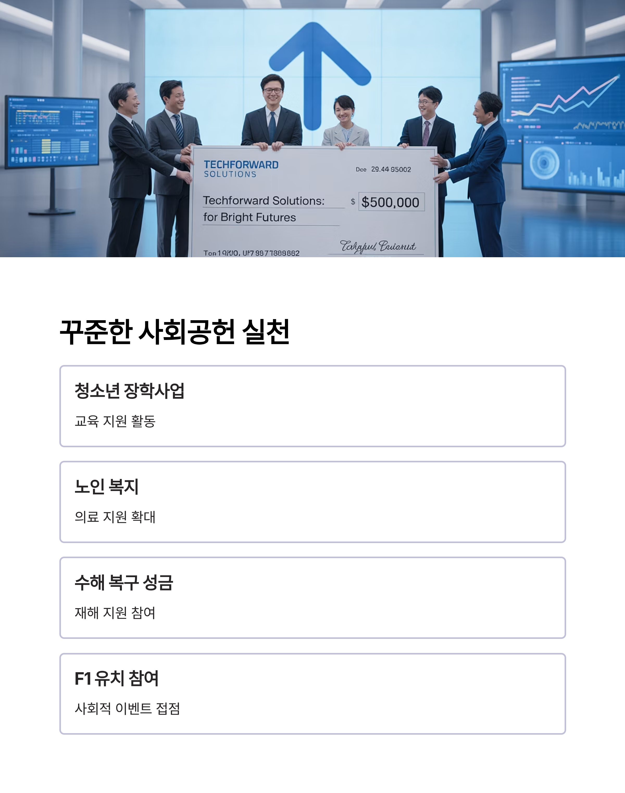 청소년 장학사업, 노인 복지, 의료 지원, 수해 복구 성금까지. 강 회장의 사회공헌은 보여주기식이 아닌 꾸준한 실천에 기반하고 있습니다. 특히 포뮬러 원(F1) 유치 참여 같은 이색적인 행보는 기업 경영과 사회적 이벤트의 접점을 넓혀온 사례로 평가됩니다.