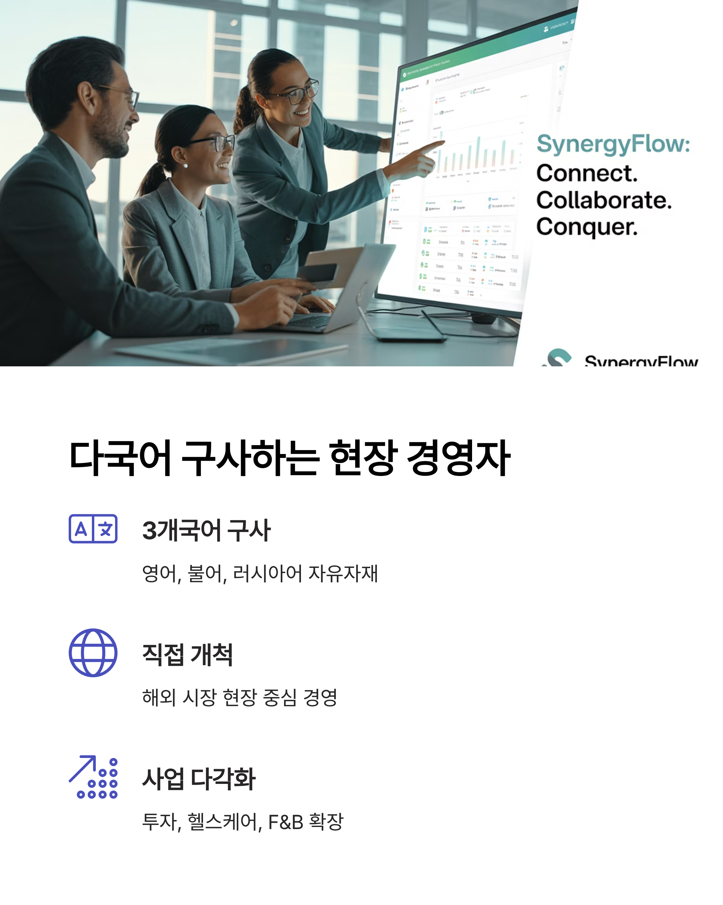 글로벌 언어 능력으로 직접 뛰는 경영자
