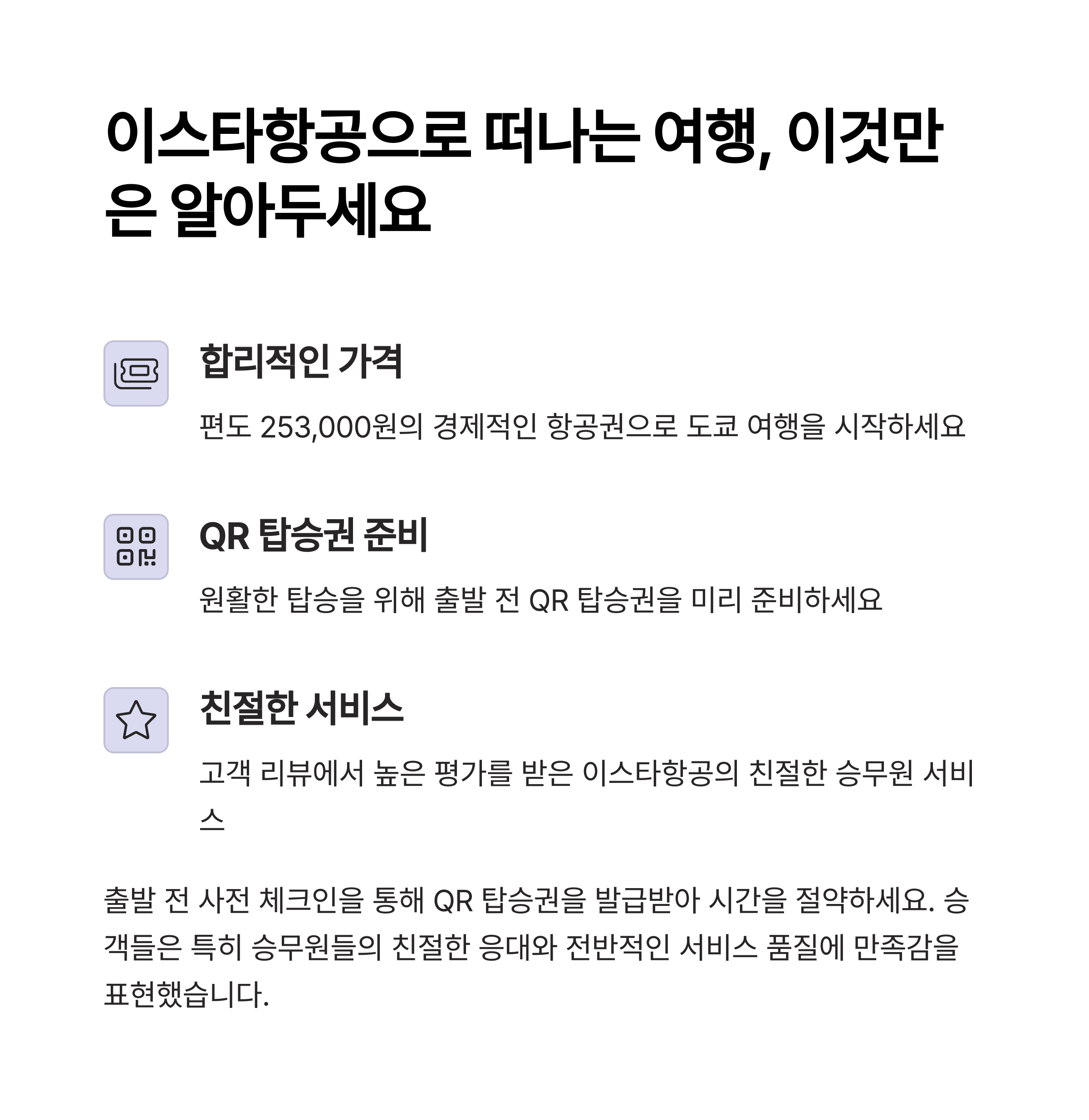 이스타항공은 저렴한 가격과 효율적인 도쿄 여행 옵션을 제공합니다.