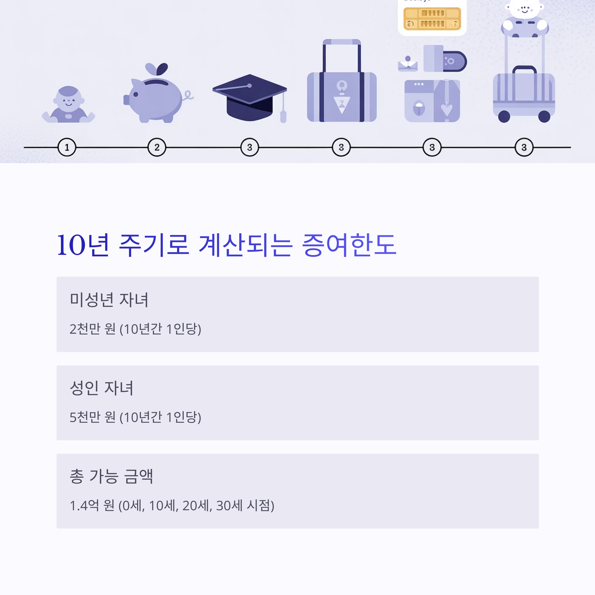 자녀에게 증여세 없이 돈을 줄 수 있는 한도는 10년 주기로 계산됩니다.