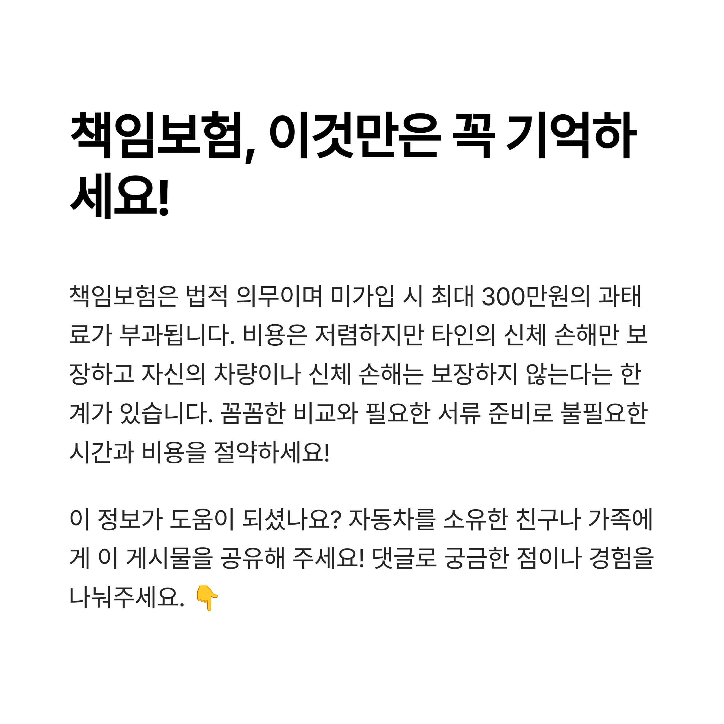 꿀팁! 책임보험료는 보험사마다 차이가 크니, 보험료 비교사이트를 적극 활용하세요.