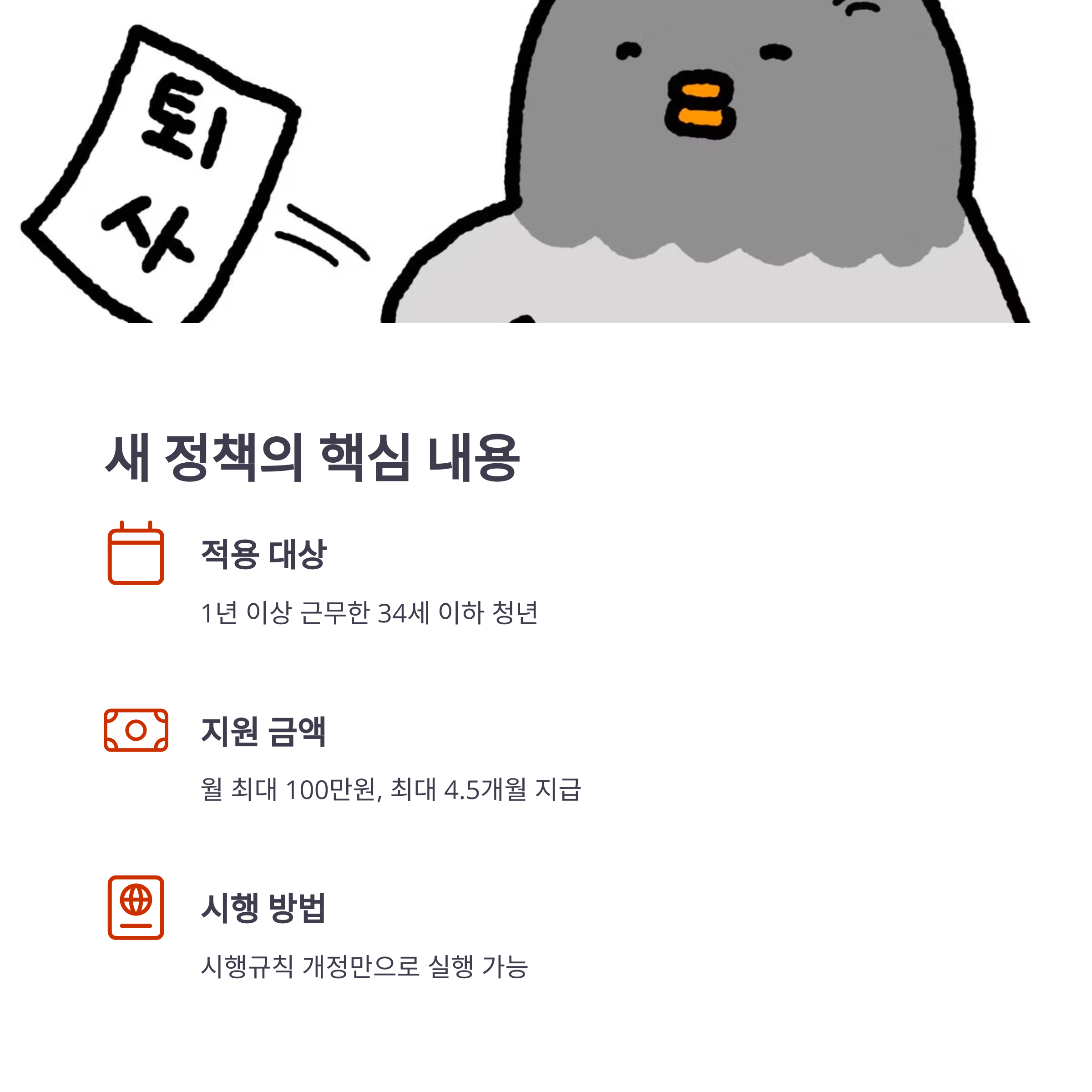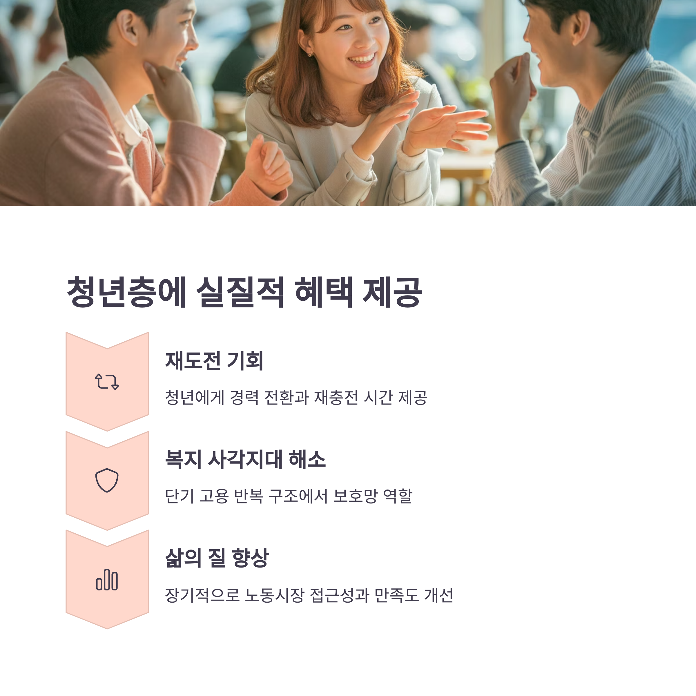 고용 취약계층인 청년에게 실질적 휴식과 재도전의 기회를 제공할 수 있습니다.