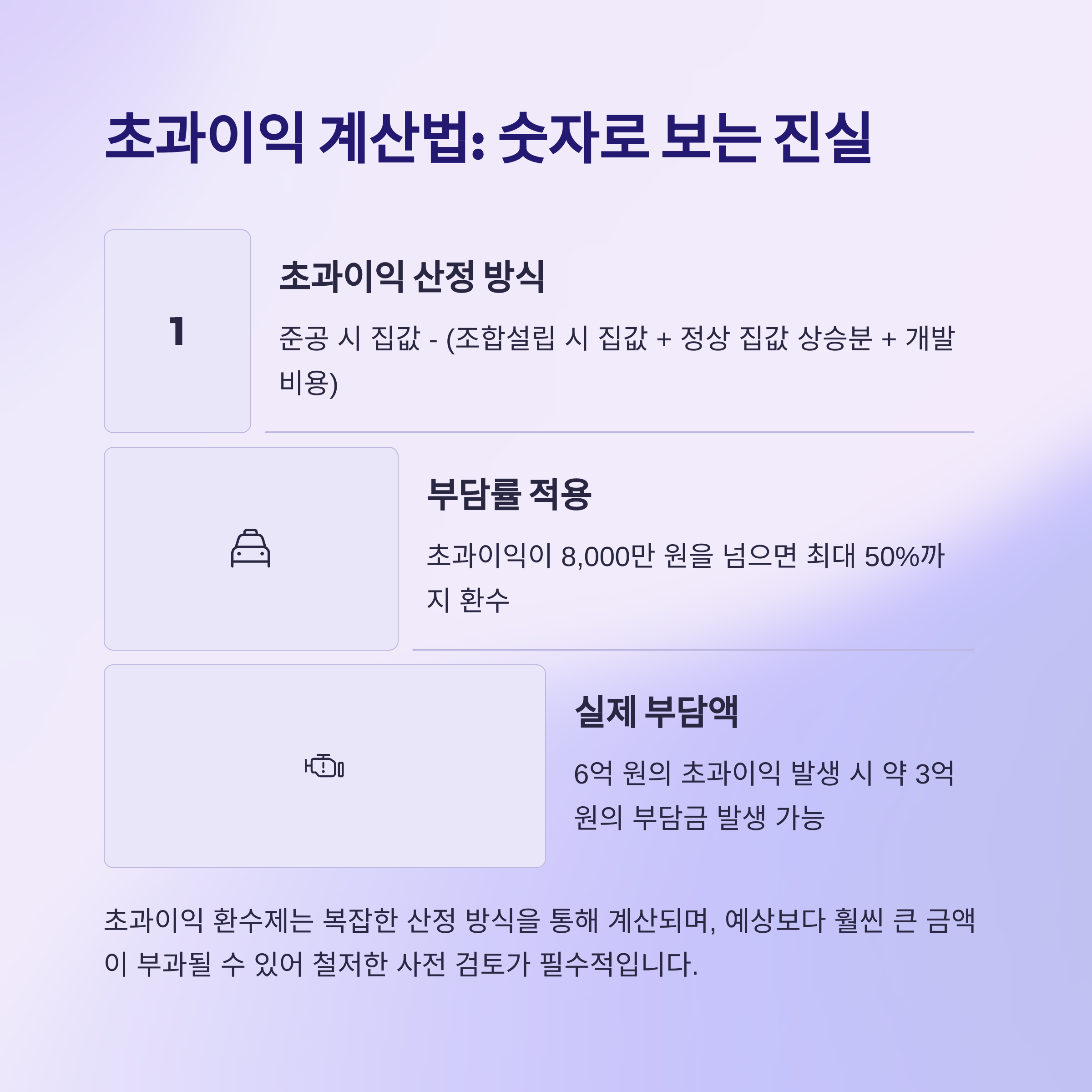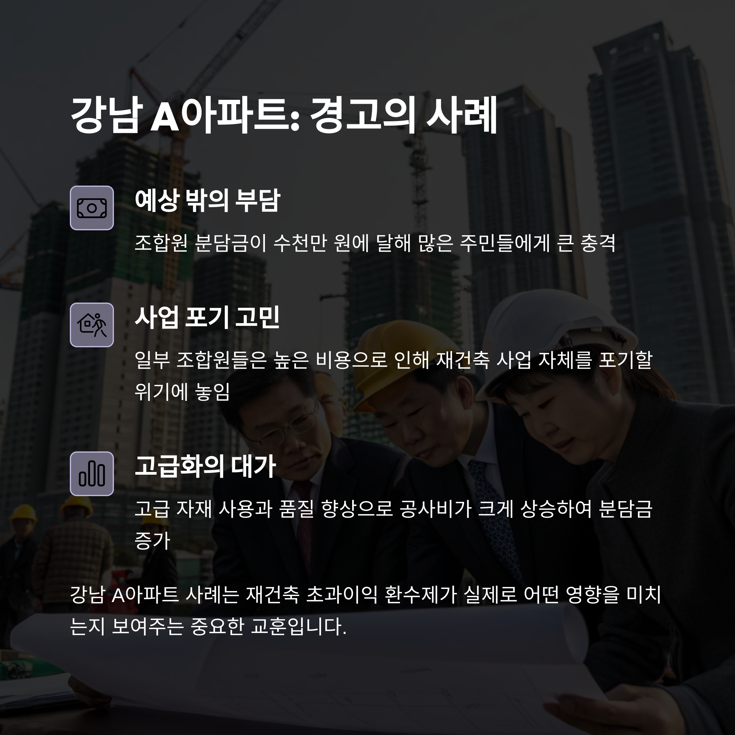 실제로 서울 강남의 한 아파트 단지에서는 재건축 이후 집값이 폭등하면서 조합원 1인당 초과이익이 2억 원이 넘는 사례가 있었습니다. 그 결과 환수금만 5천만 원이 넘었고, 일부 조합원들은 사업 중도 포기를 고민하기도 했죠.