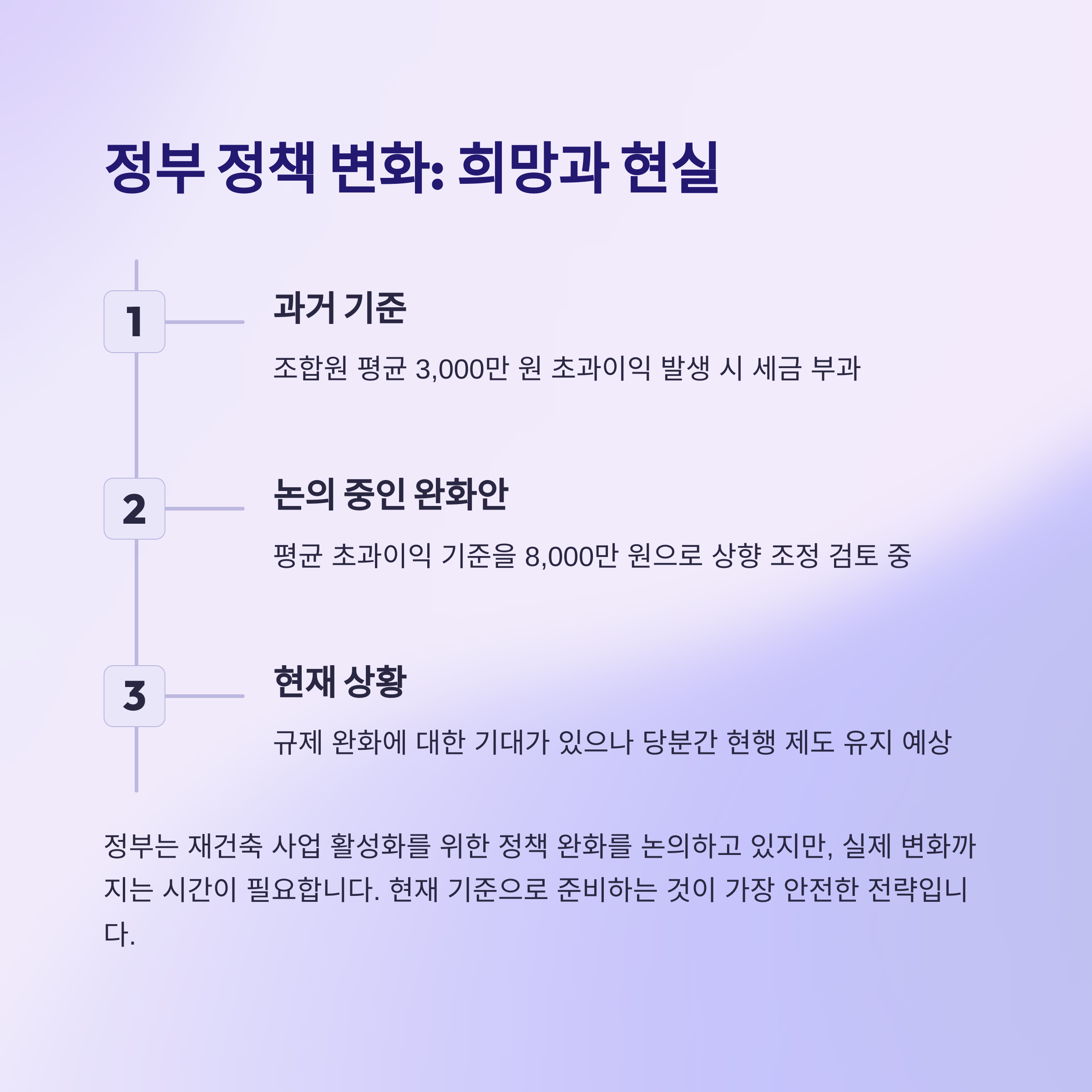 분담금이 갑자기 몇 천만 원 이상으로 늘어나면, 조합원들은 심각한 부담을 안게 됩니다. 특히 1가구 1주택 실수요자들에게는 재정적 충격이 클 수밖에 없죠. 이로 인해 사업 지연이나 갈등이 커지는 경우도 많습니다. 더 큰 문제는 많은 조합원이 이 제도를 잘 모르고 재건축에 뛰어들었다가 예상치 못한 비용 폭탄을 맞게 된다는 점입니다.