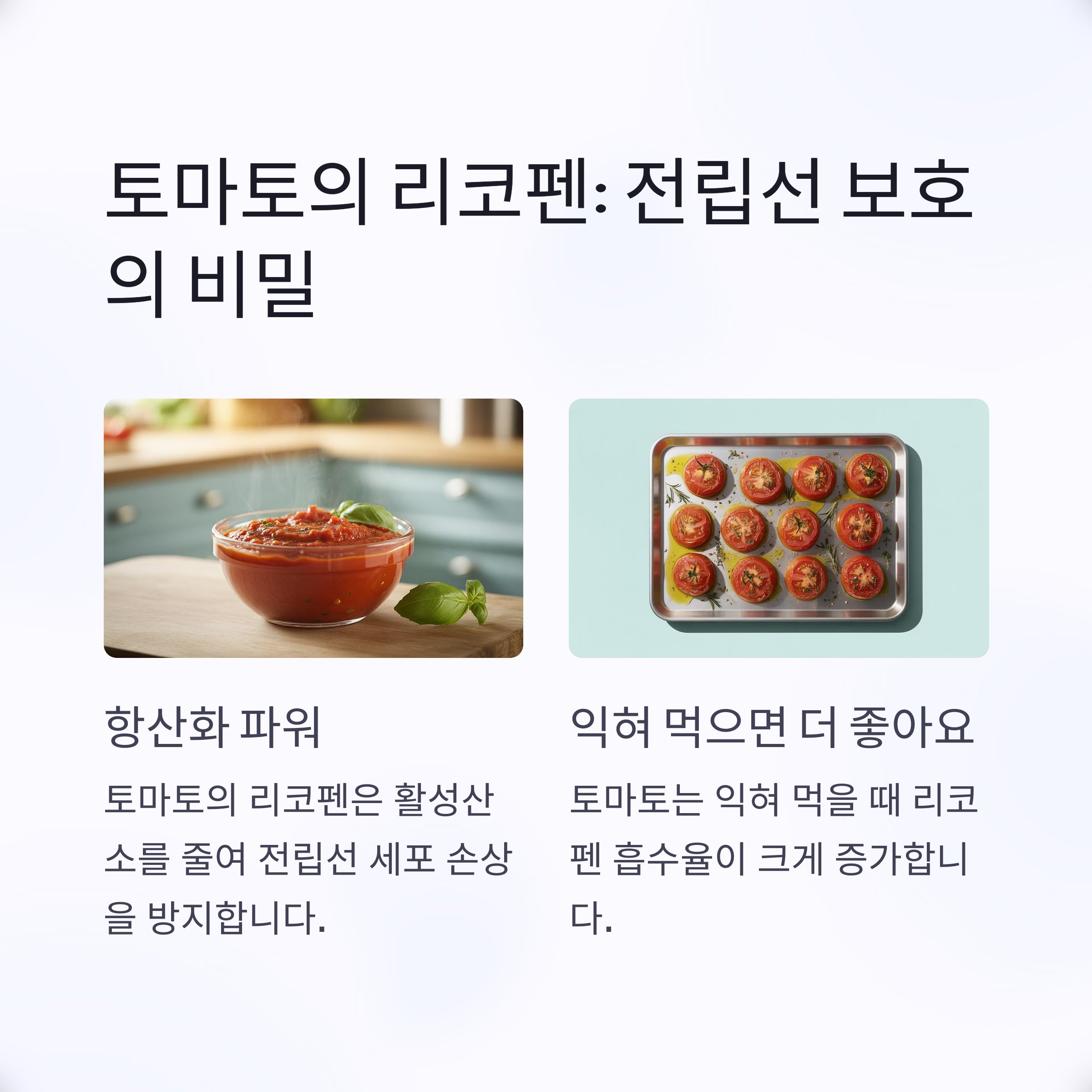 토마토소스, 구운 토마토 등으로 섭취하는 것이 더 효과적입니다.