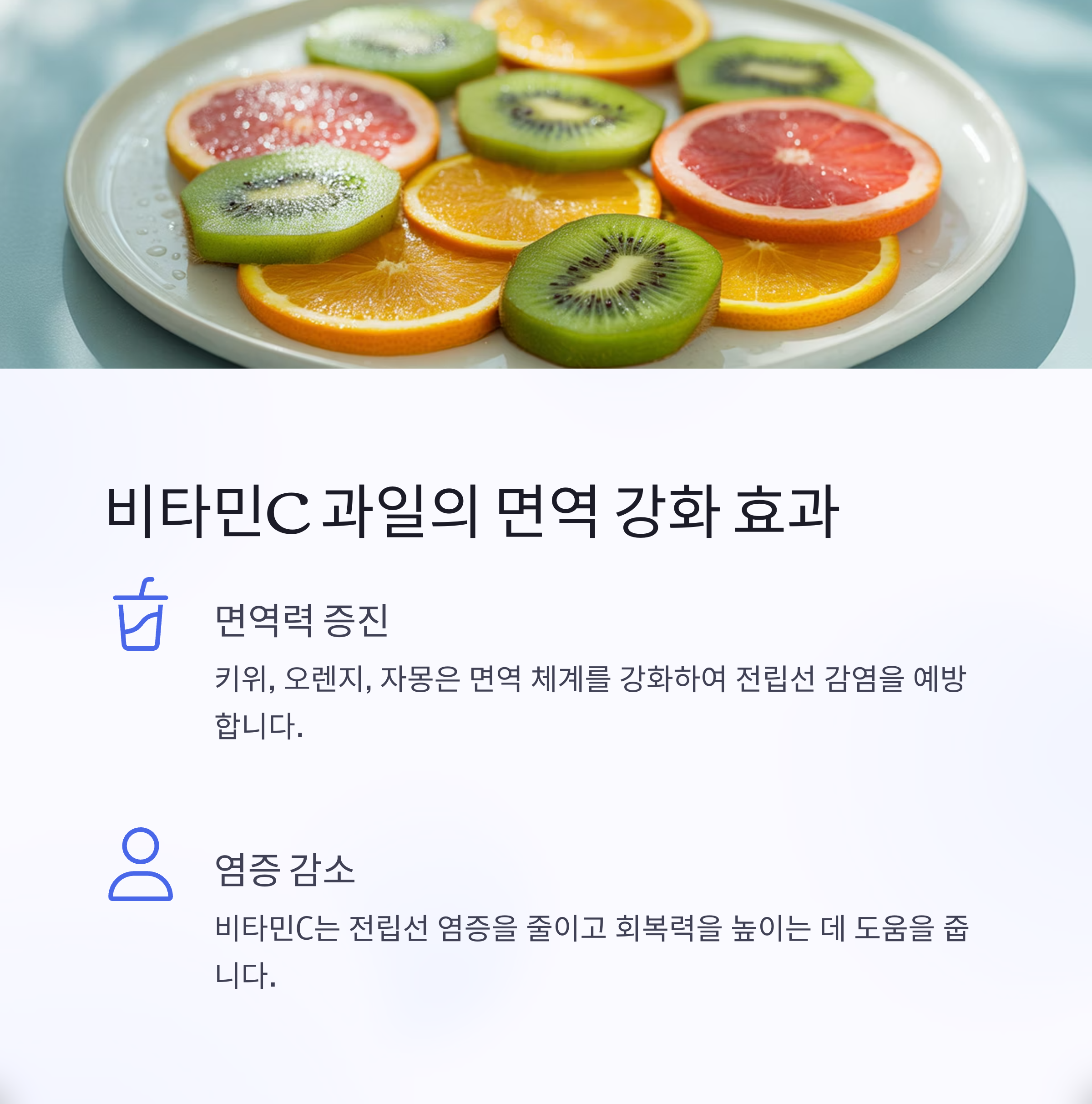 비타민C는 면역력을 높이고 체내 염증 반응을 줄이는 데 중요한 역할을 합니다.
