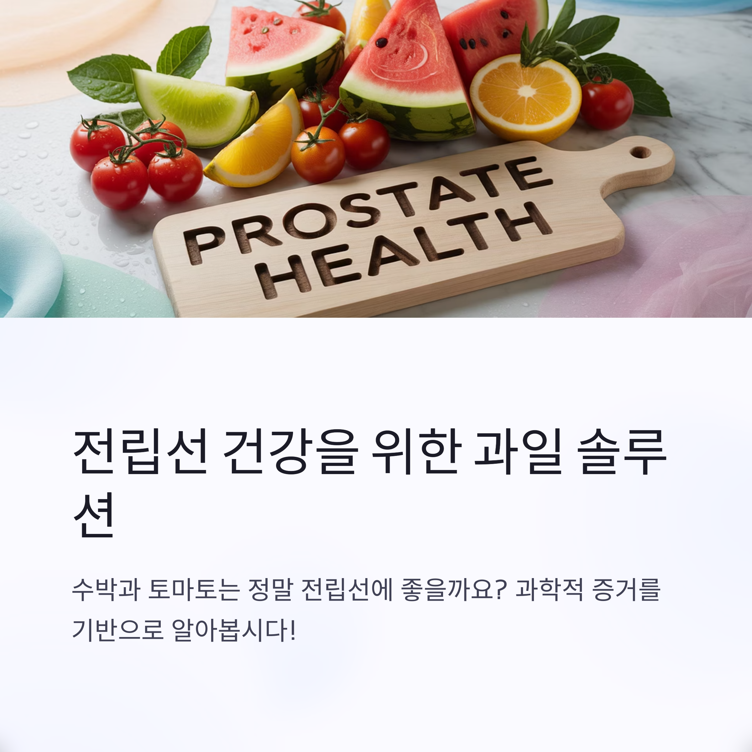 전립선 건강은 중년 남성의 삶의 질을 좌우할 만큼 중요한 요소입니다. 그중에서도 수박과 토마토는 항산화 물질이 풍부해 전립선 건강에 유익하다는 이야기가 많습니다. 이번 글에서는 전립선에 좋은 과일로 손꼽히는 수박과 토마토의 효능을 중심으로, 과학적 근거를 바탕으로 총정리해드리겠습니다.