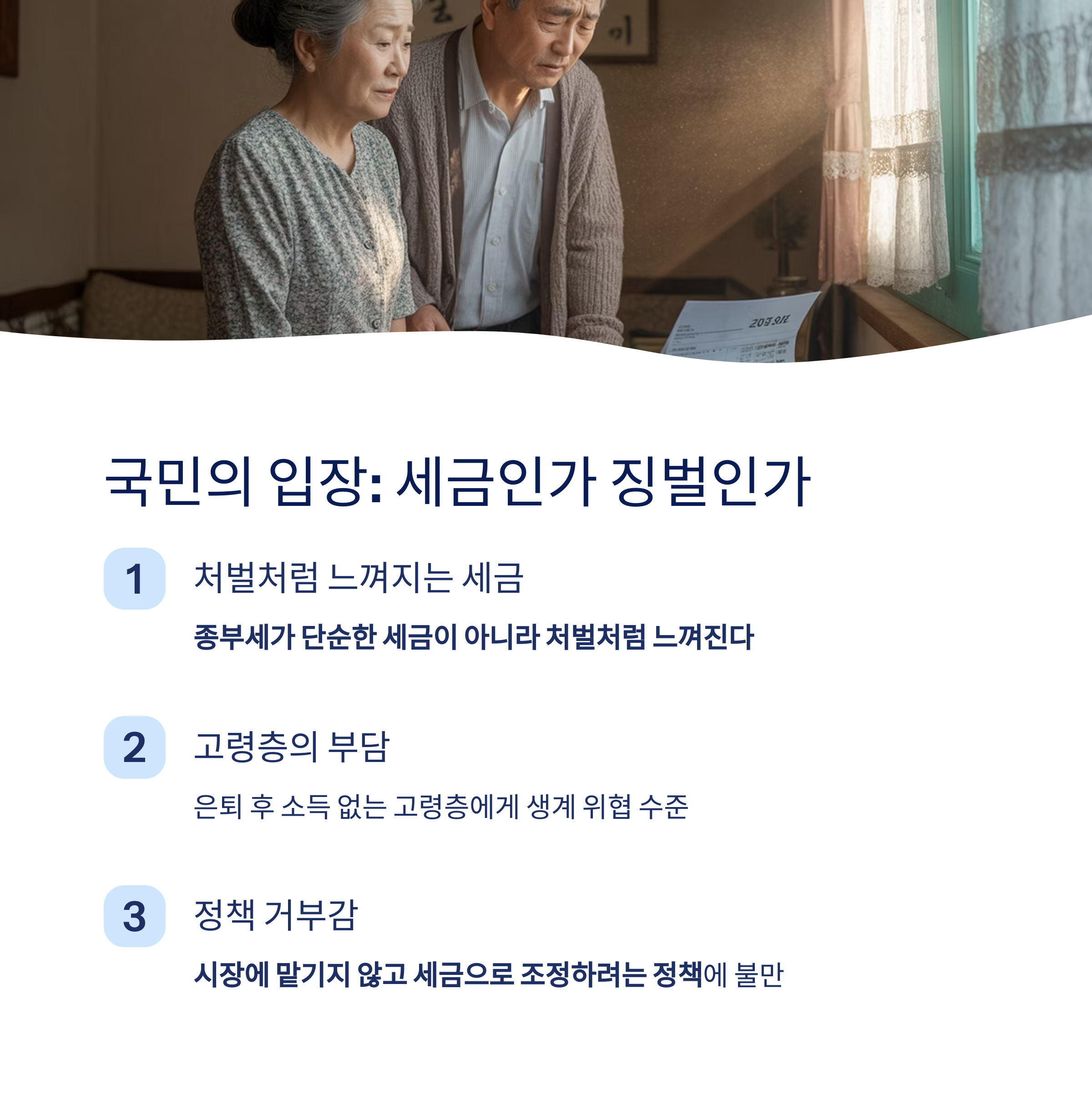 시민들 사이에서는 종부세가 단순한 세금이 아니라 처벌처럼 느껴진다는 반응도 많습니다