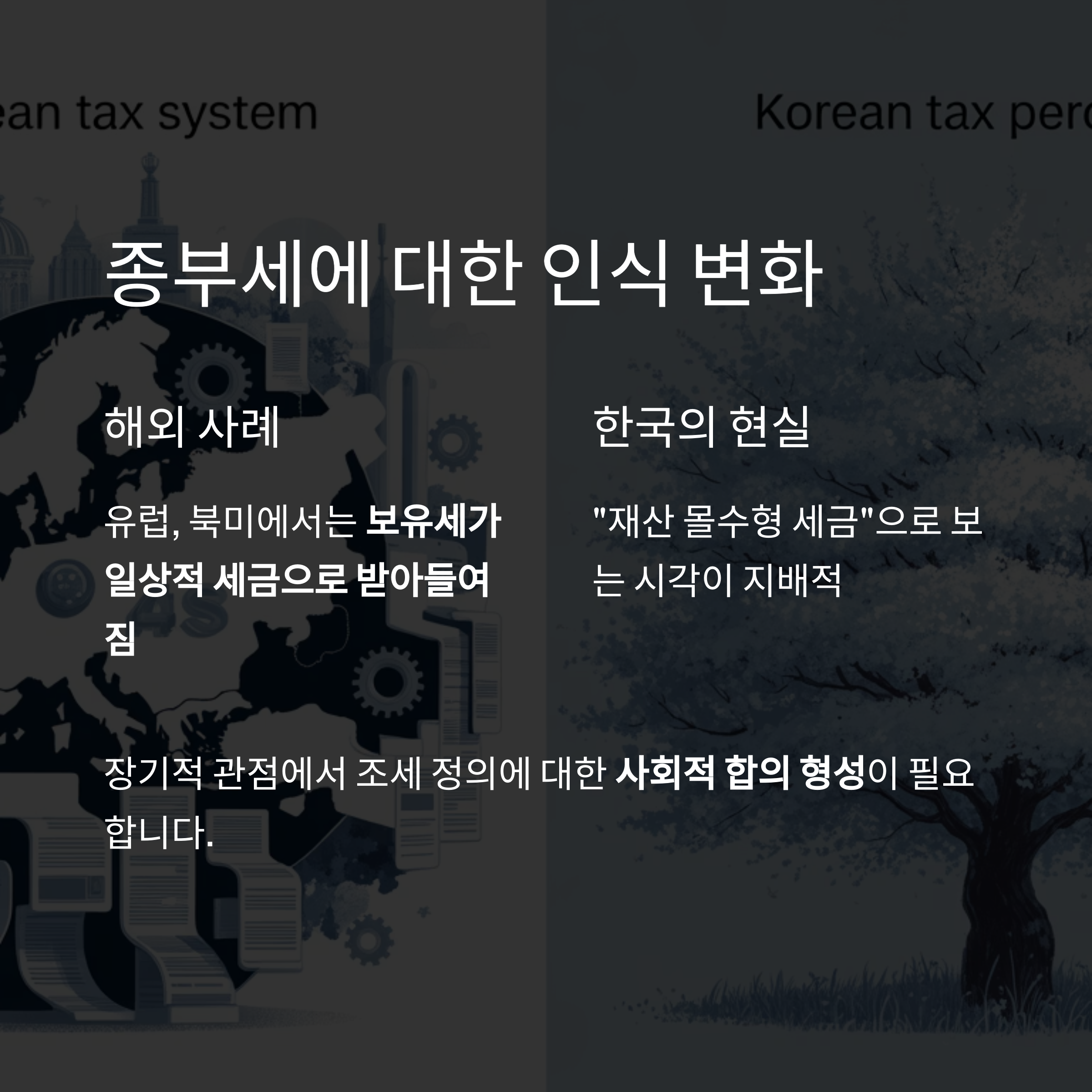 한국은 여전히 "재산 몰수형 세금"으로 보는 시각이 지배적입니다