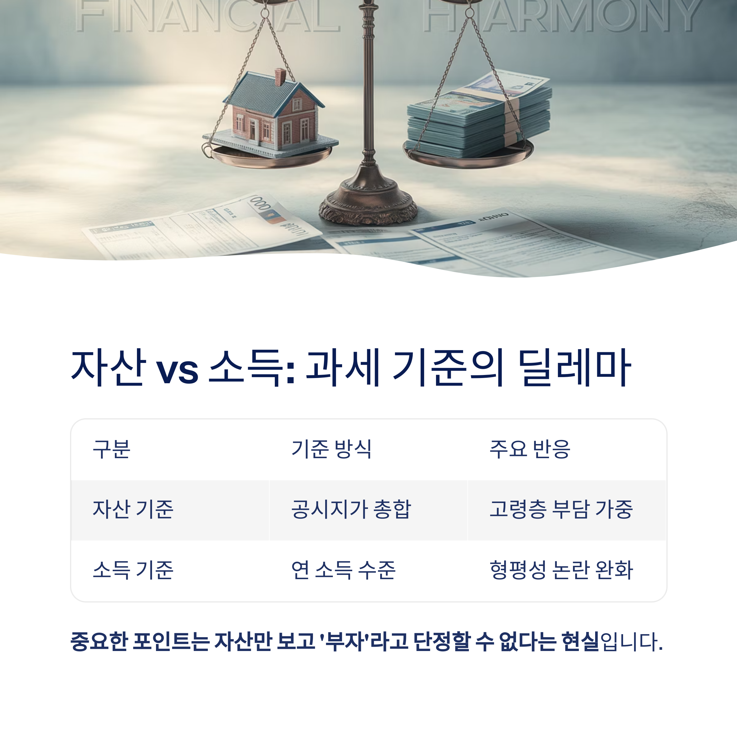 | 자산 기준 | 공시지가 총합 | 고령층 부담 가중 |