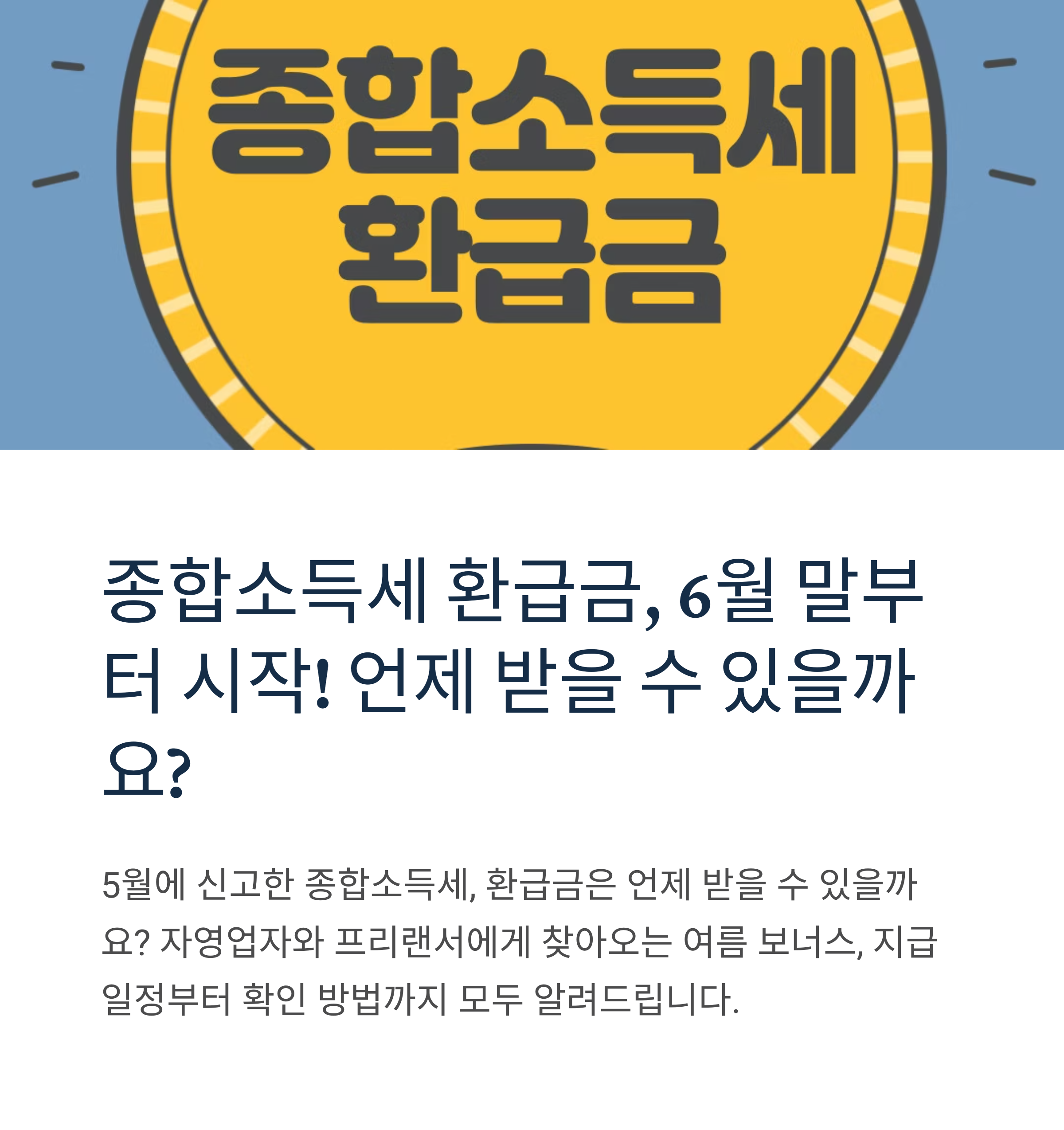 종합소득세 환급일은 언제? 6월 말부터 순차 지급됩니다