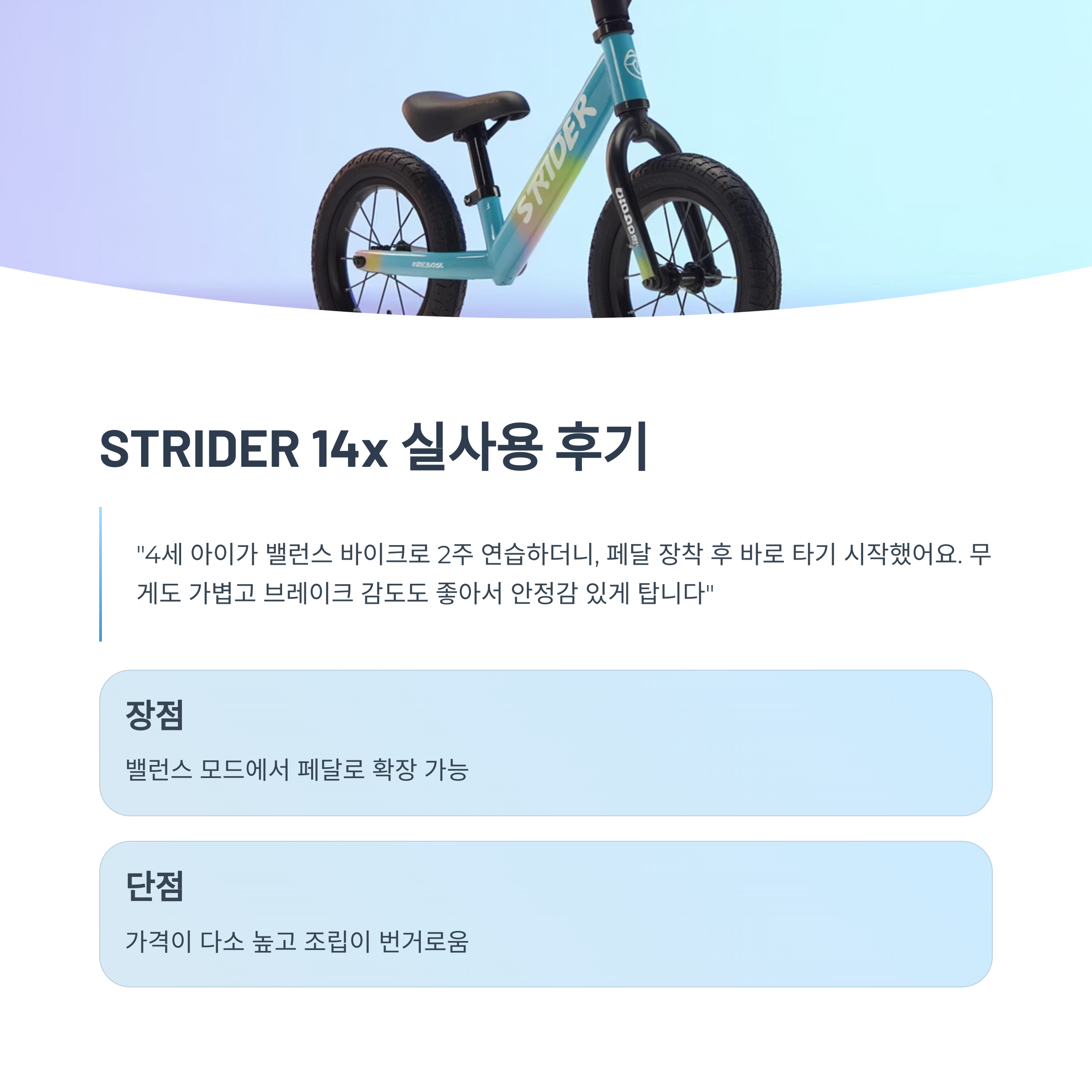 특히 STRIDER 14x처럼 밸런스 바이크와 일반 자전거 전환이 가능한 제품은