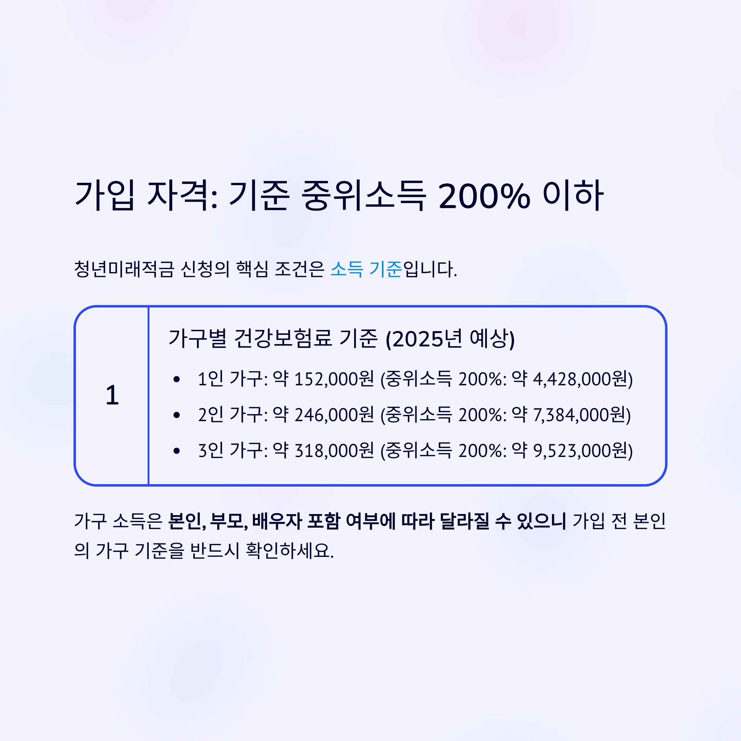기준 중위소득 200% 이하인 청년만 신청할 수 있어요.