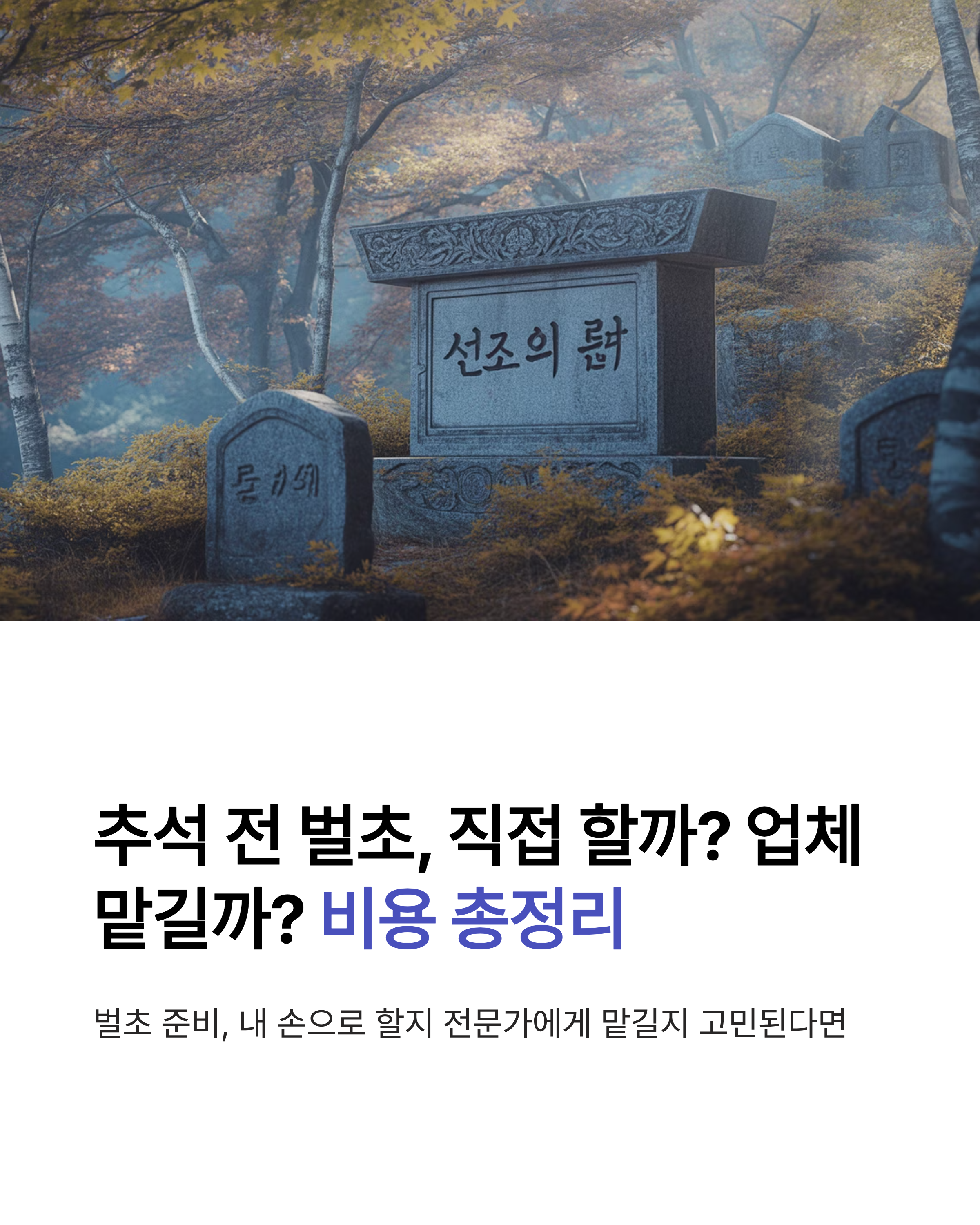 추석이 다가오면 빠질 수 없는 준비 중 하나가 바로 벌초입니다. 조상님 산소를 정리하는 일이라 소홀히 할 수는 없지만, 직접 하기엔 시간과 체력 부담이 크지요. 그래서 많은 분들이 벌초 대행 업체를 찾기도 합니다. 오늘은 직접 벌초를 할 때와 업체에 맡길 때의 차이, 그리고 실제 비용 범위를 한눈에 정리해 드리겠습니다.