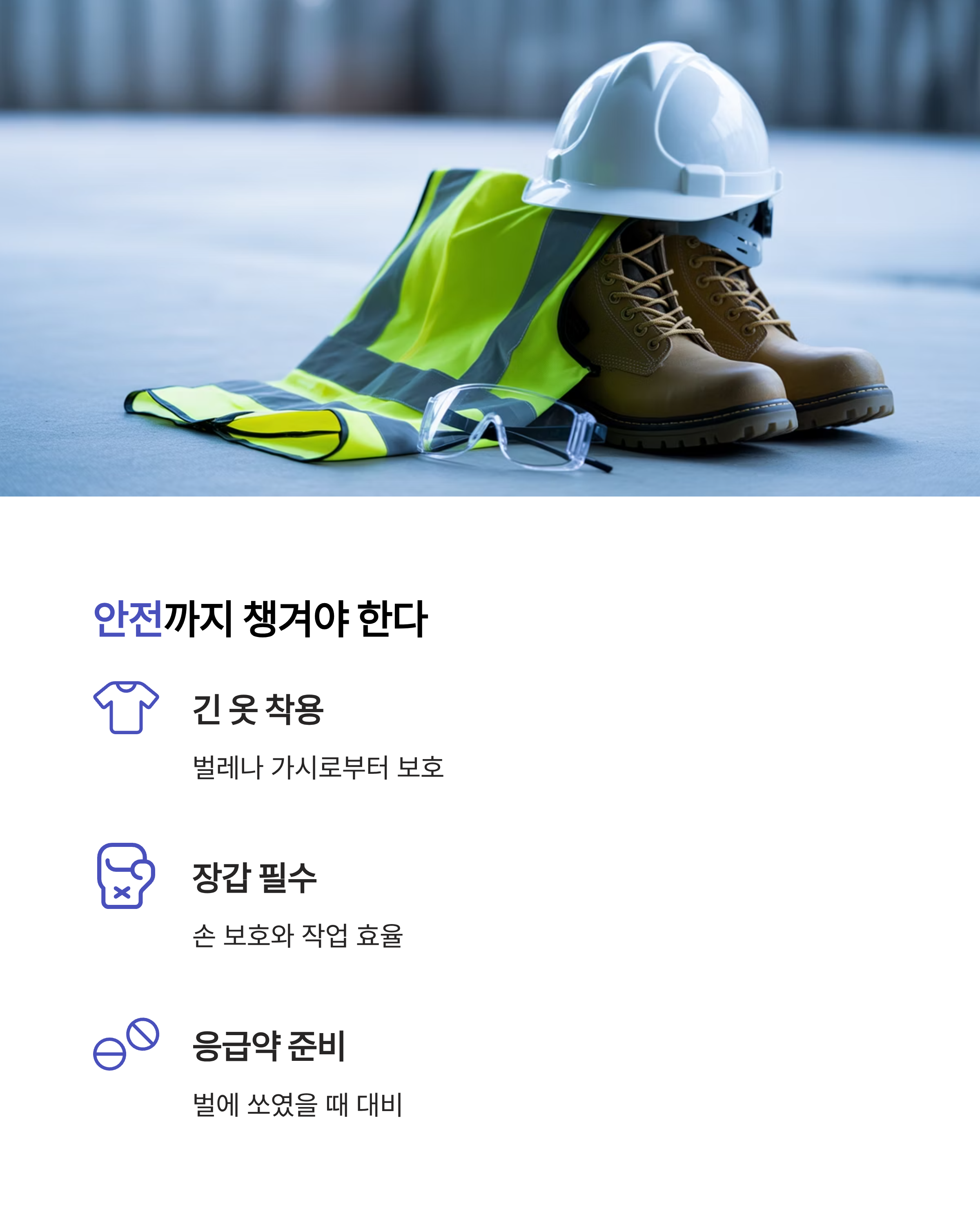직접 벌초를 한다면 긴 옷과 장갑은 필수이며, 벌에 쏘였을 때를 대비해 응급약을 준비하는 것이 좋습니다. 안전을 챙기지 않으면 오히려 위험한 상황에 놓일 수 있으니 꼭 유의해야 합니다.