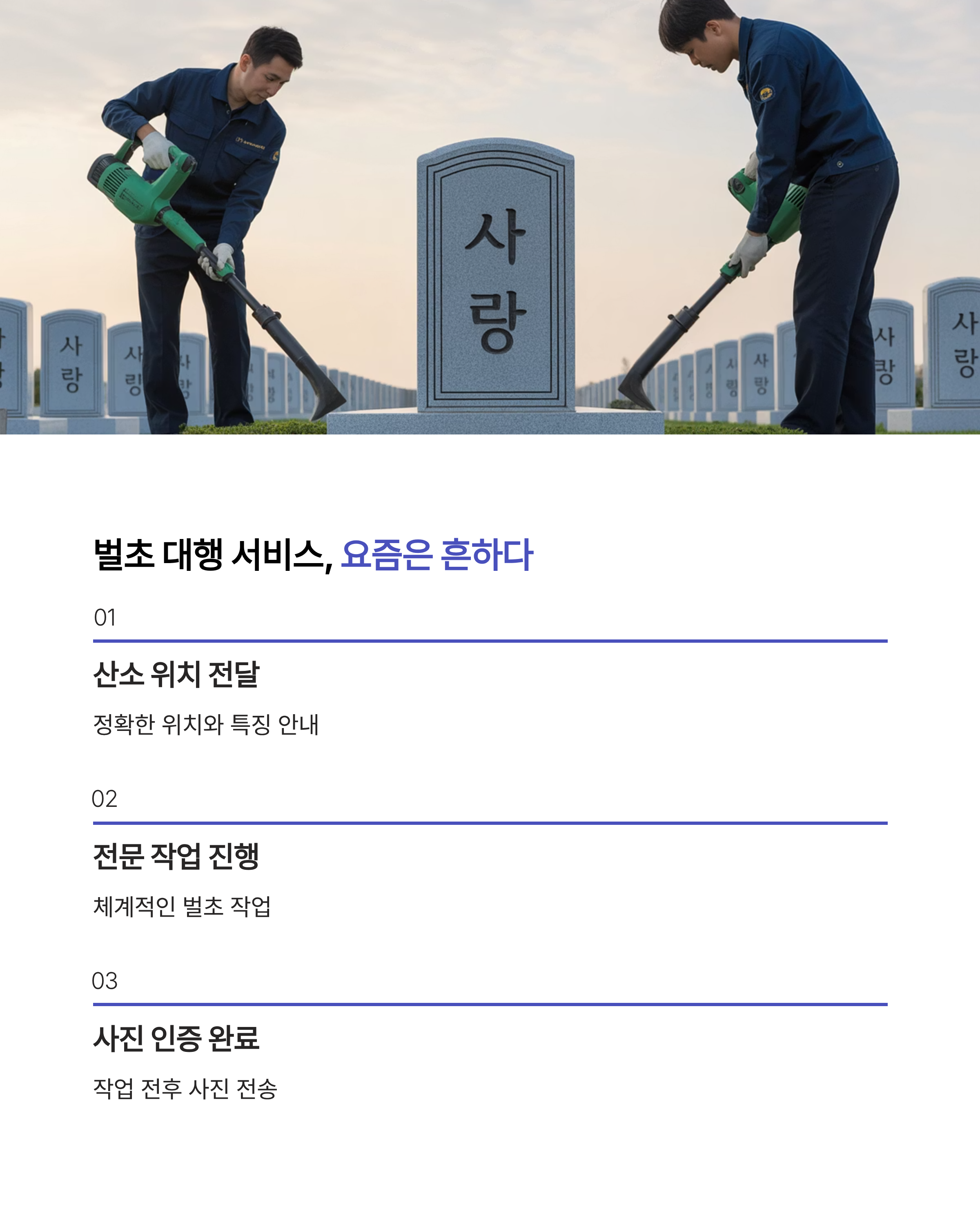 직접 하면 비용은 거의 들지 않지만, 장시간 풀을 베고 잡초를 정리하는 체력 소모가 상당합니다. 특히 여름 끝자락이라 날씨도 덥고 벌이나 뱀 같은 위험도 있습니다. 하지만 가족이 함께 모여 추억을 쌓는 시간이라는 점에서 직접 벌초를 선택하는 분들도 많습니다.