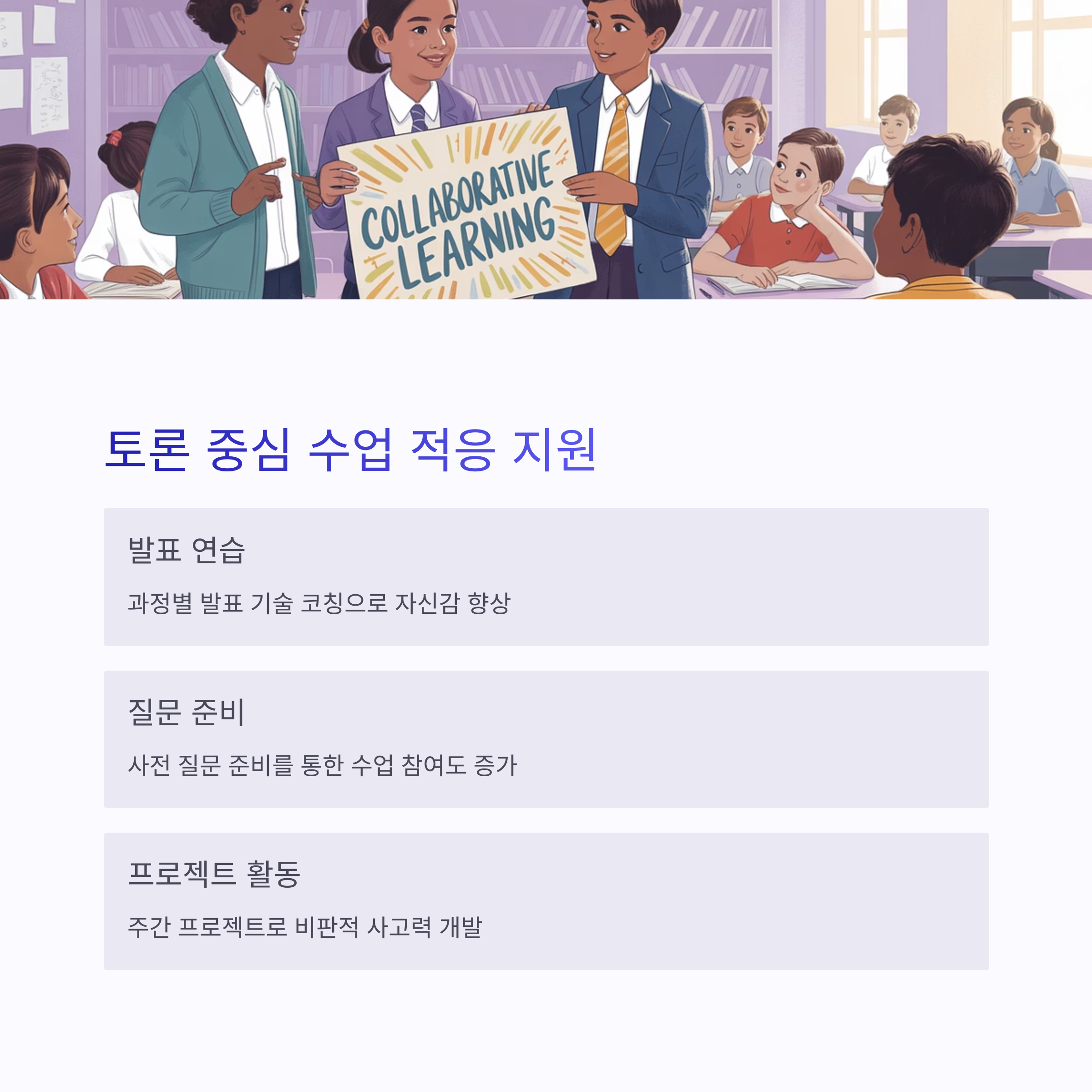 수업 참여: 한국식 학습법과의 차이 적응 지원