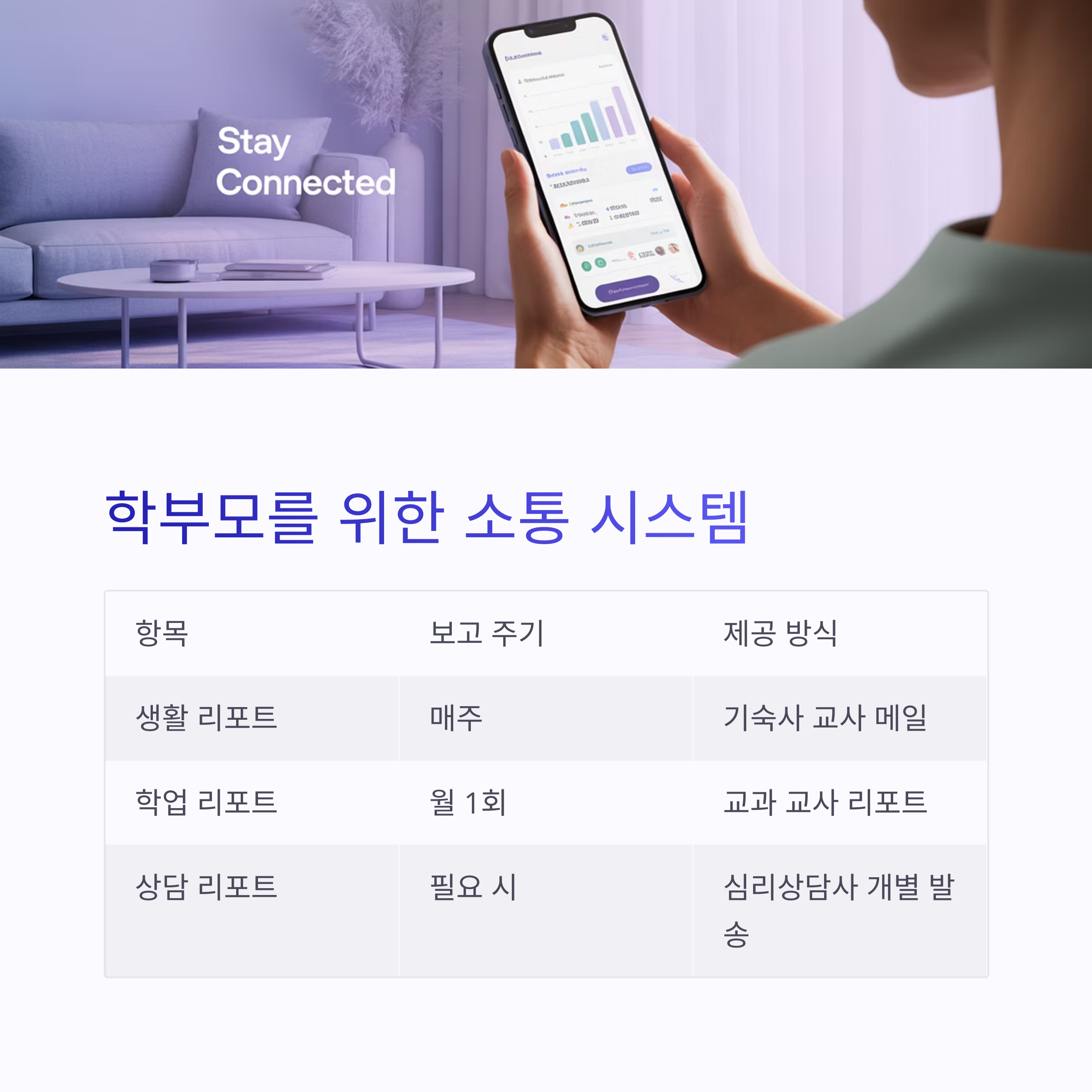 | 생활 리포트 | 매주 | 기숙사 교사 메일 |