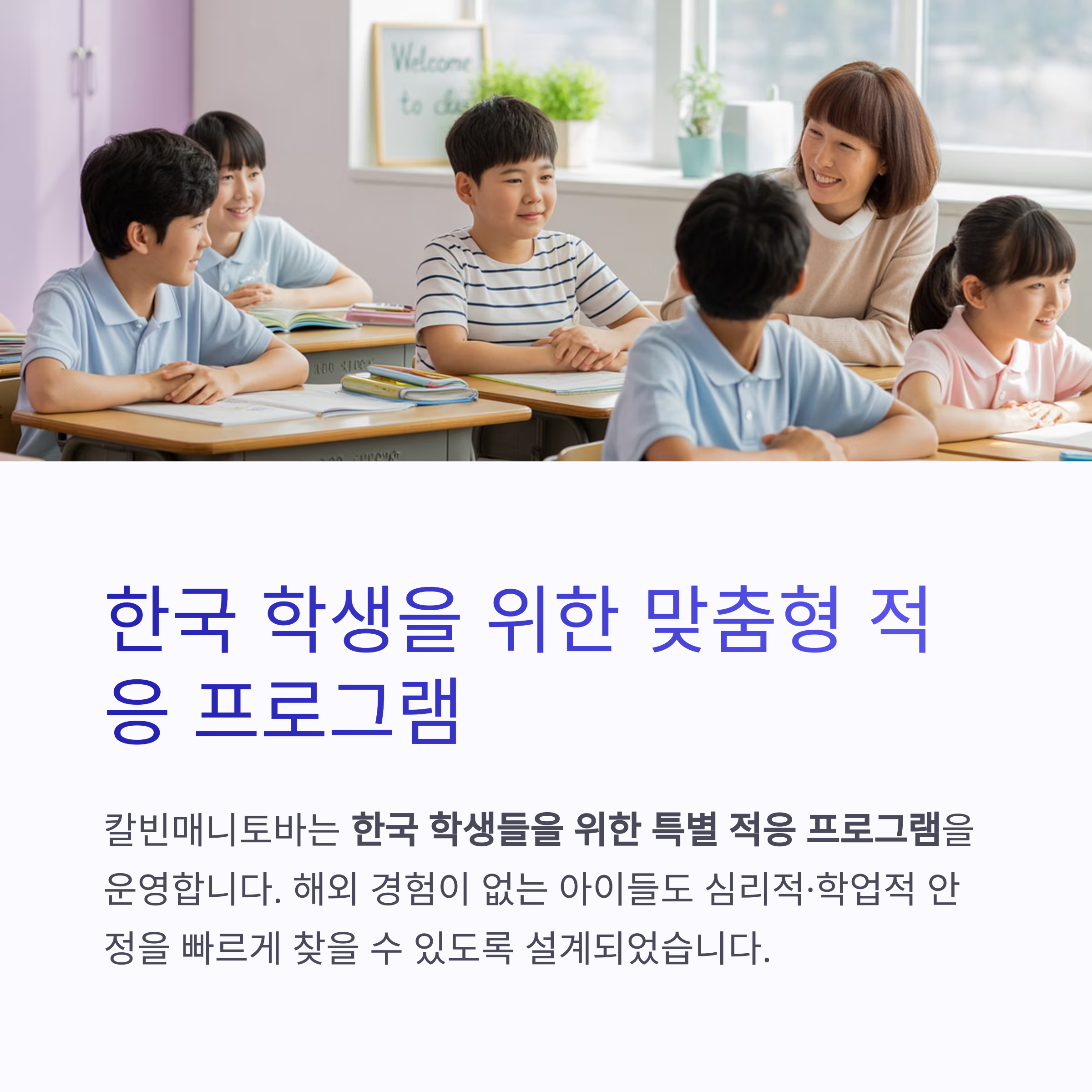 하지만 칼빈매니토바는 이런 학생들을 위한 체계적인 적응 시스템을