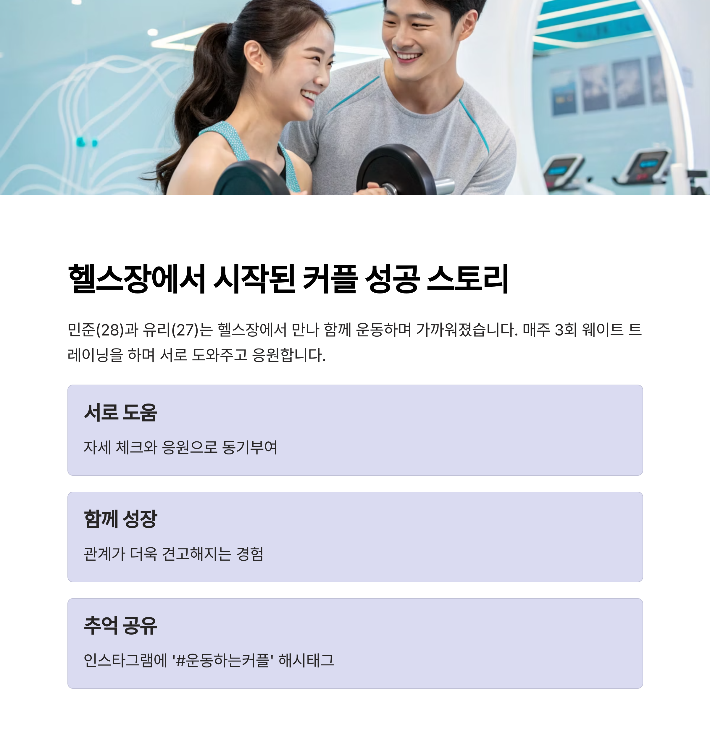 2. 스토리텔링 – 헬스장에서 커플이 함께 성공한 이야기
