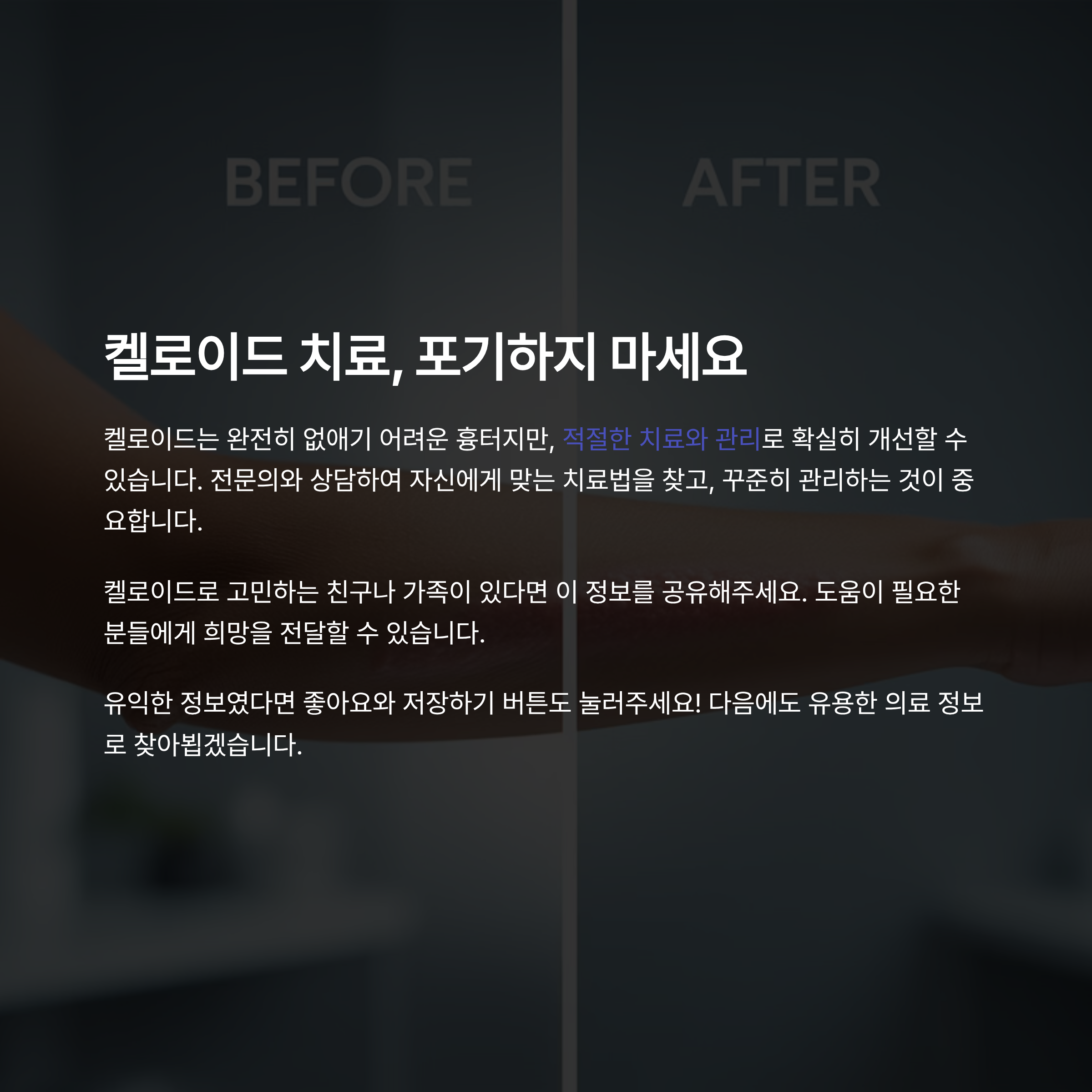 켈로이드 흉터는 단순히 보기 불편한 외형의 문제를 넘어, 통증과 가려움, 심리적인 스트레스까지 동반할 수 있습니다. 특히 턱, 팔, 가슴처럼 자극이 자주 가해지는 부위에 생긴 켈로이드는 관리가 더 어렵고 재발 위험도 크지요. 이 글에서는 피부과 전문의들이 실제로 권장하는 병원 치료 방법과 함께 부위별 관리 포인트까지 총정리해드립니다.