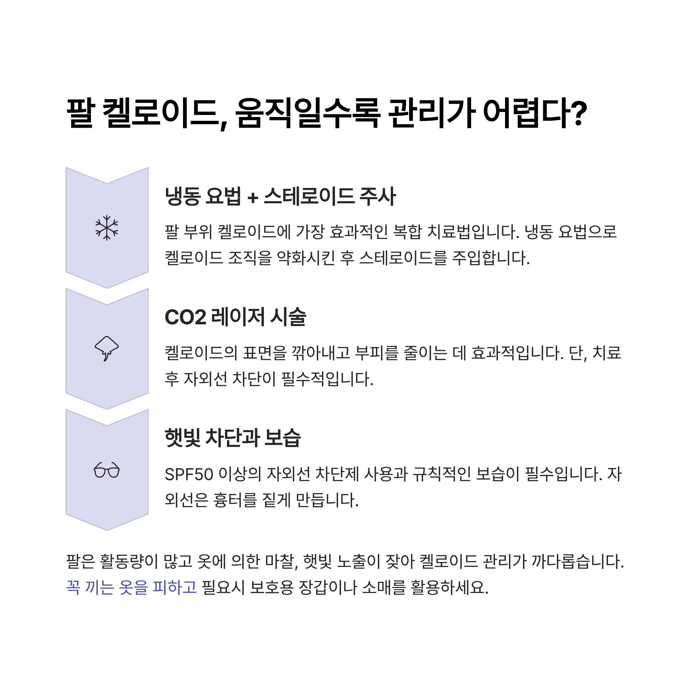 팔 켈로이드, 움직일수록 관리가 어렵다?