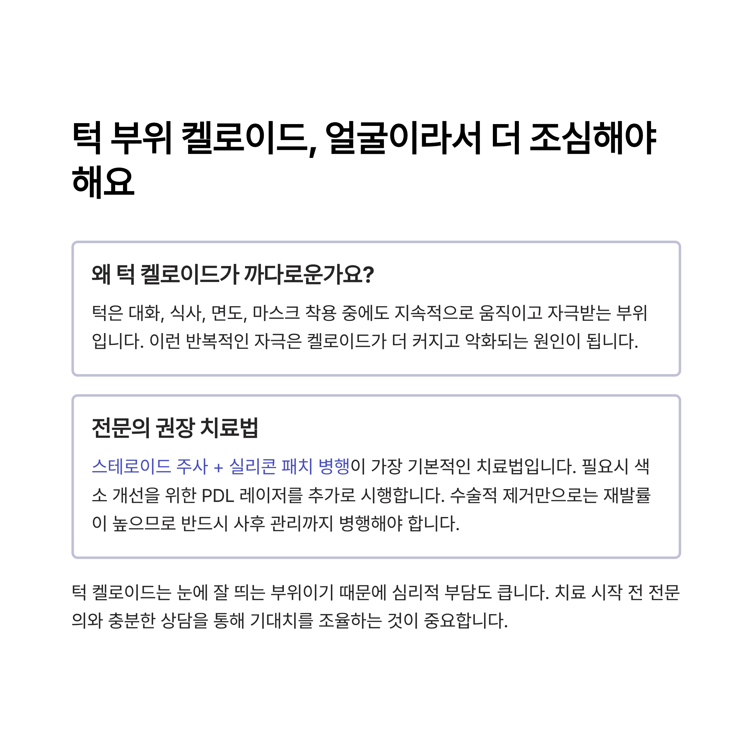 턱 부위 켈로이드, 얼굴이라서 더 조심해야 해요